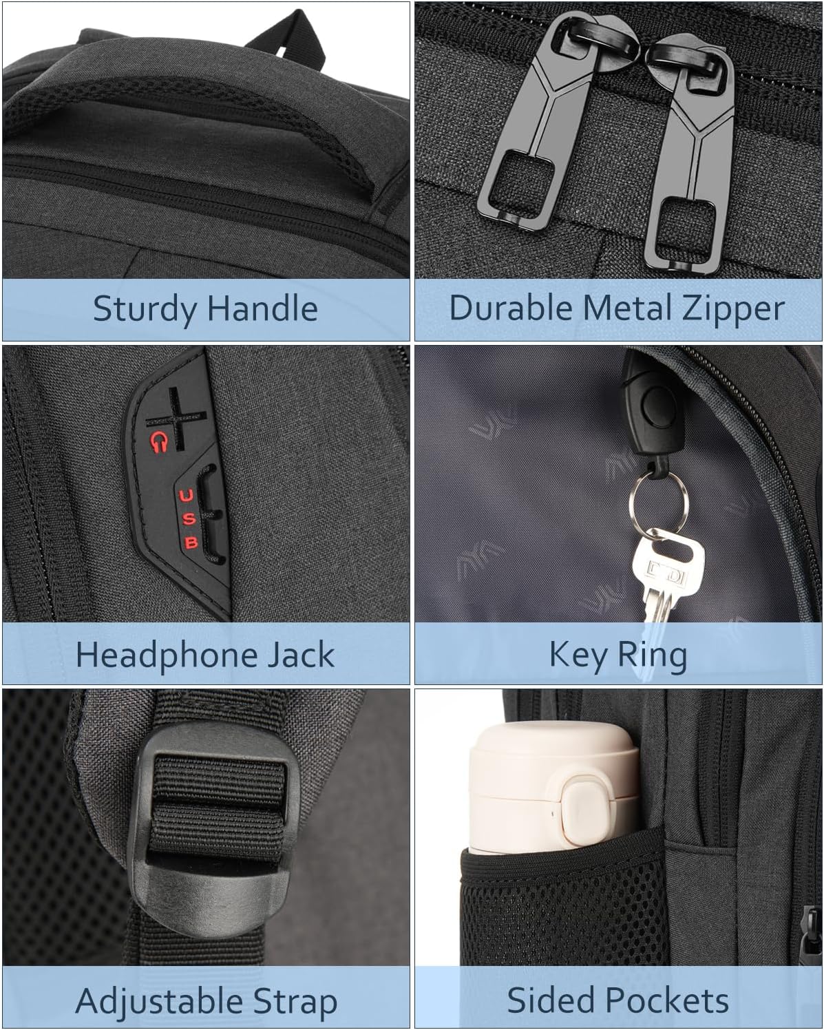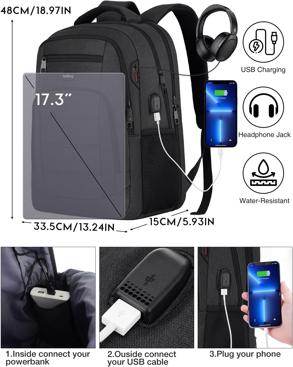 ★USB & HEADSET PORT: With built in USB charger outside and built in charging cable inside,this USB back pack offers you a more convenient way to charge your phone while walking. And the headphone interface frees your hands when enjoying music.