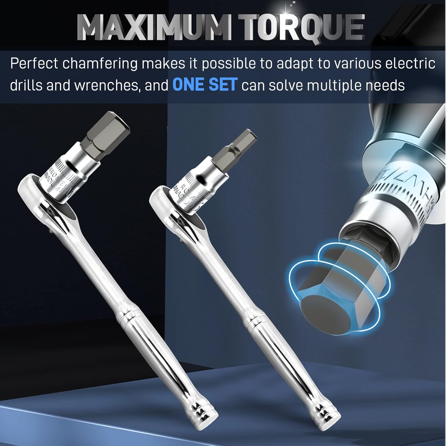 【Precise Tightening】These must-have allen wrench sockets can be inserted into any torque wrenches or impact driver tightly and precisely with the chamfered bit ends. You can use them for auto repair, and household appliance maintenance