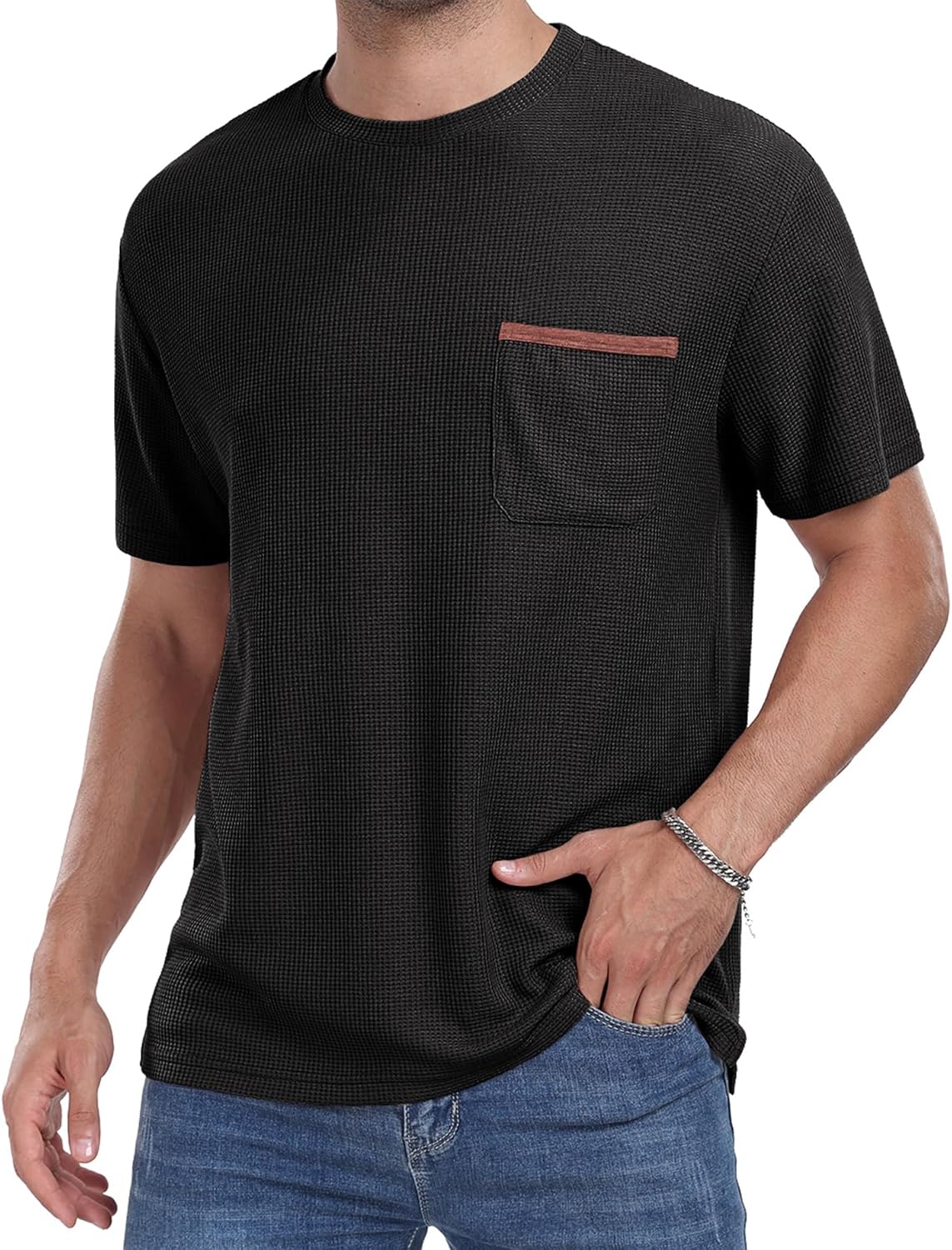 【Fashion Match】:waffle Crew Neck T-shirts, which can be easily matched with various looks. match beach longs or casual pants for a casual look, or match this stylish shirts with slacks, jeans and dress pants to create a summer fashion look. it will be a summer must-have in your wardrobe.
