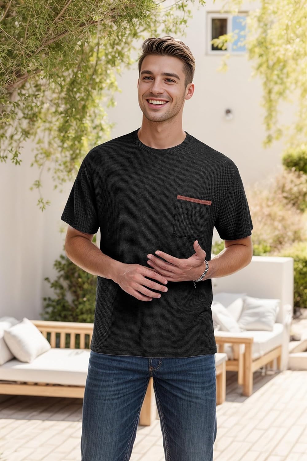 【Premium Fabric】:This mens waffle tee made of 70% polyester30% rayon,Ultra Soft,lightweight,breathable,skin-friendly and stretch comfortable to wear.