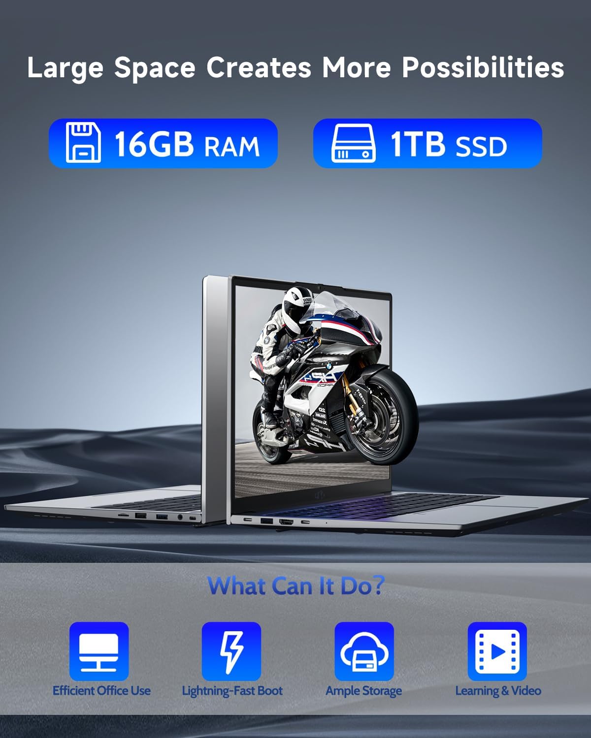 【Upgradable Design & Durable Configuration】"Future-proof your NIMO Laptop with upgradable RAM and SSD slots, allowing you to easily expand memory and storage as needed. Equipped with 16GB DDR4 RAM and a 1TB PCIe SSD, it delivers lightning-fast startups and seamless data transfers. Encased in a durable A-shell metal chassis, it blends rugged durability with sleek, modern aesthetics for everyday resilience.
