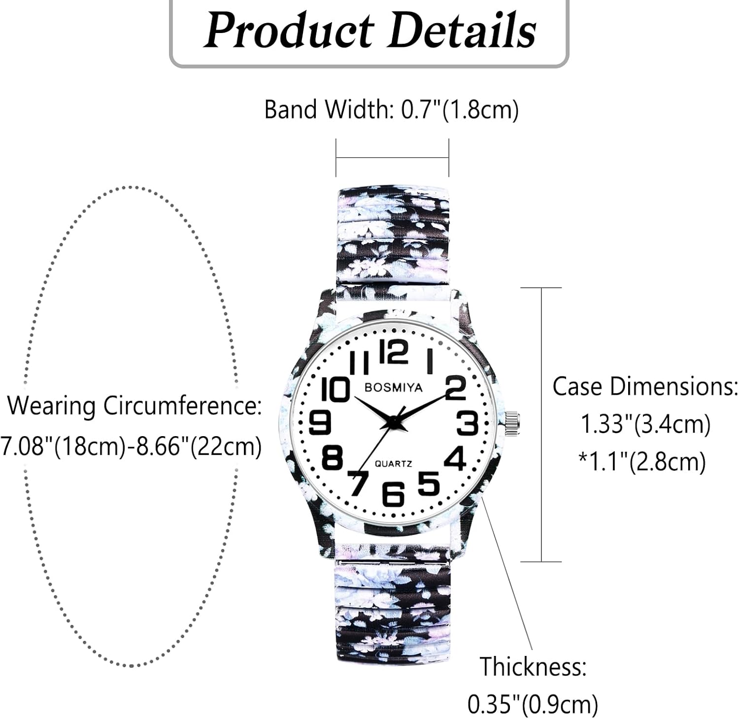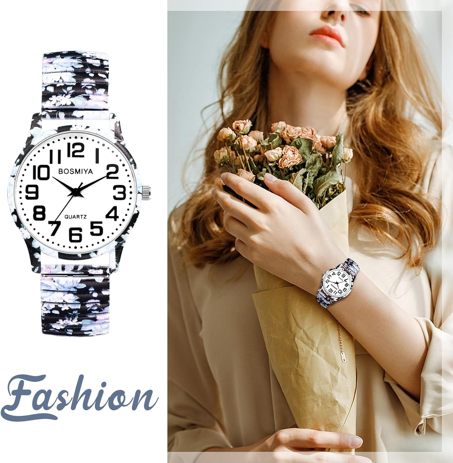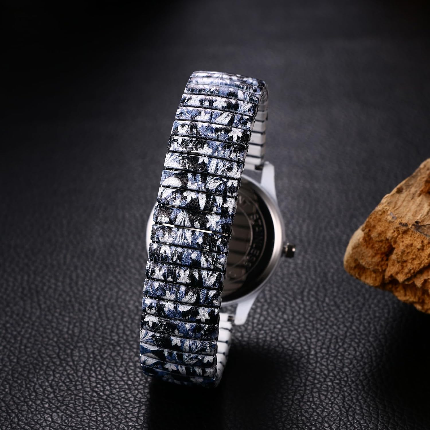 【Fashion Stretch Band Watches for Womens】Bohemian style; floral print dial and strap; three-hand analog display; scratch-resistant high-hardness dial. The round case features an easy-to-read dial and a stylish floral extension strap. Simple and elegant dress watch suitable for any occasion. The unique design combines fashion with business casual, bringing you many compliments.