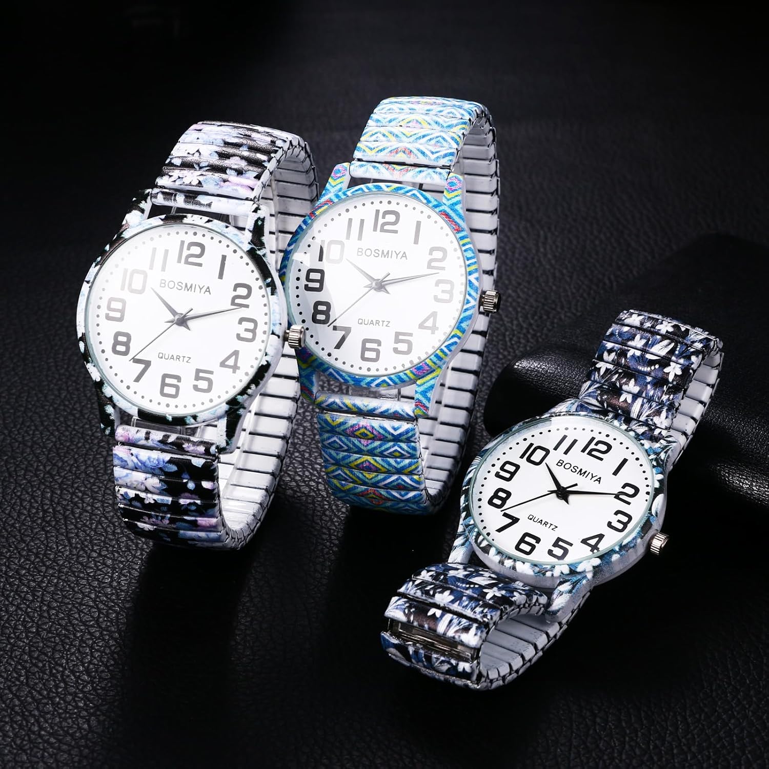 OIDEA Stretch Band Watches for Women: Bohemia Flower Easy Reader Elastic Band Watch Large Face Big Number Analog Quartz Br...
