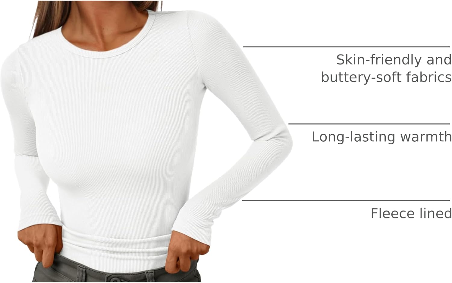 CHIC DESIGN: Basic tops for woman designed with long sleeves, fleece lined, solid color, crewneck, ribbed knit, cozy, stretch fitted, our casual tees will be your faves season after season