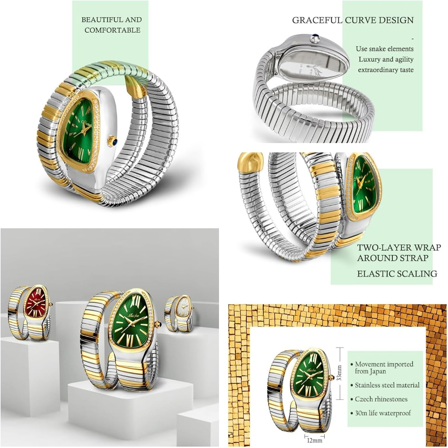 KLSKLYL Dress Snake Shape Bracelet Women Watch Top Elegant Waterproof Quartz Jewelry Watches