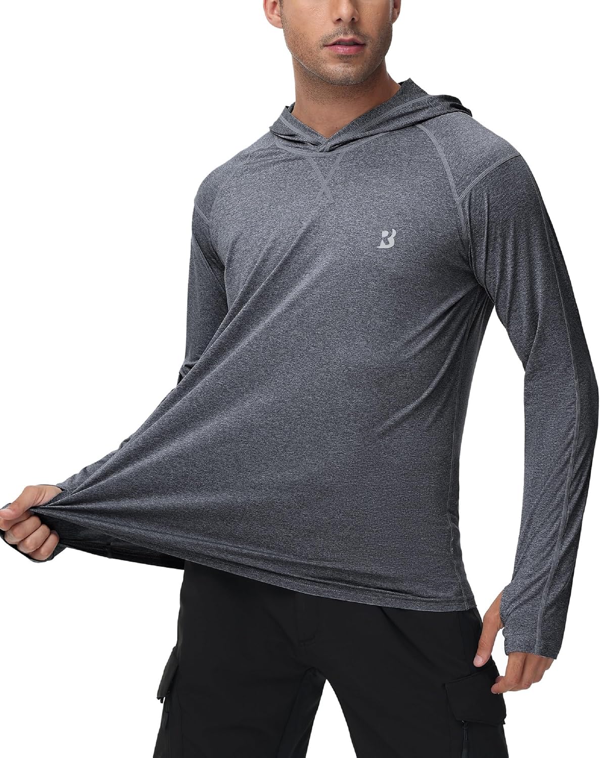 Roadbox Mens UPF 50+ Fishing Shirts, Long Sleeve UV Sun Hoodie, Hiking Running Swim Athletic Workout Shirt