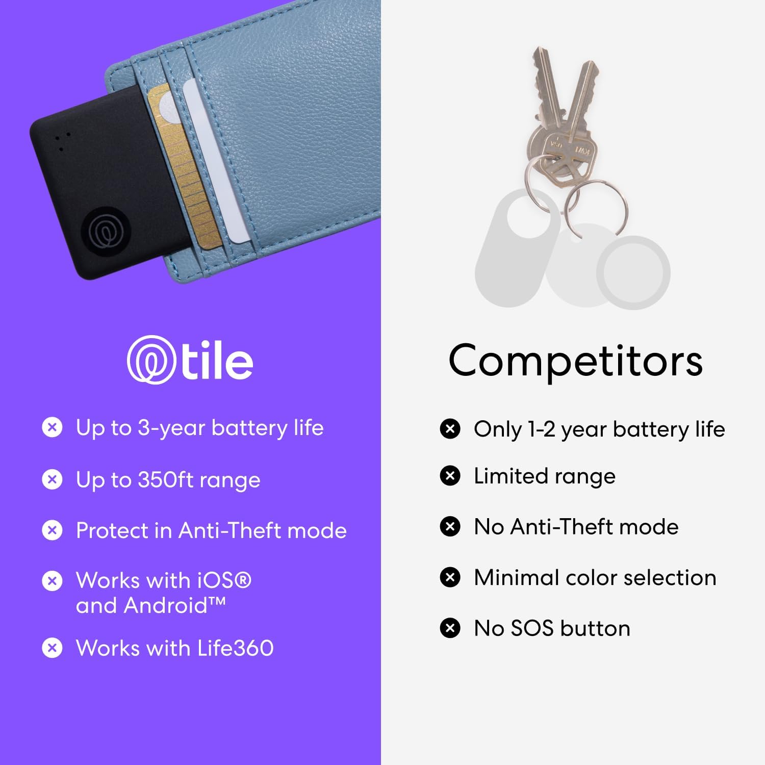 USE WITH LIFE360: Add your Tiles to Life360 — a top family connection and safety app – to see everything and everyone on the same map