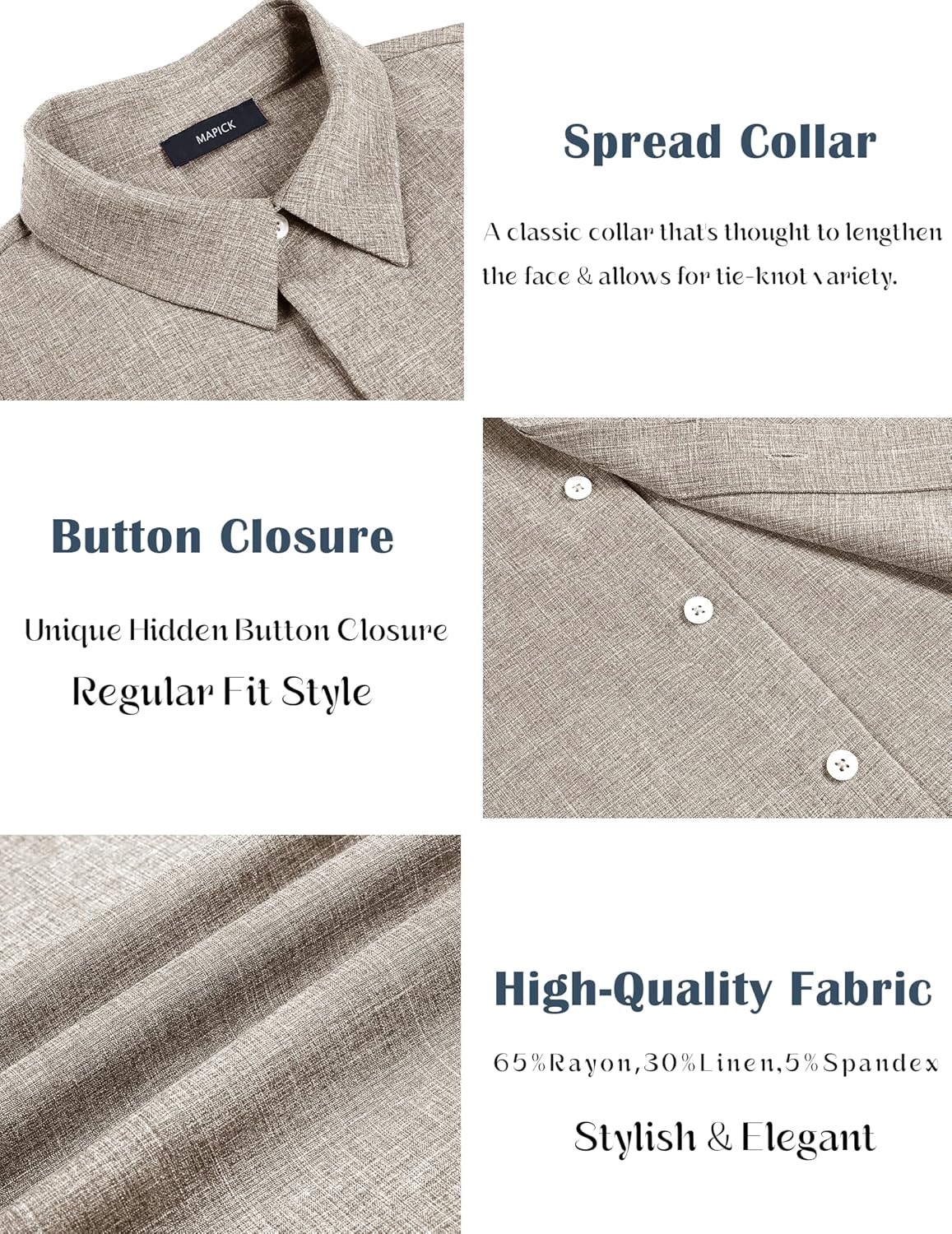 MAPICK Men's Linen Shirts Short Sleeve Button Down Casual Shirt Business Dress Clothing Beach Fashion Summer Tops