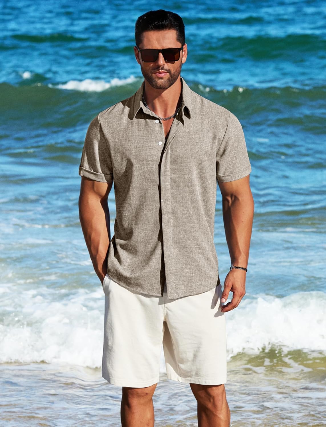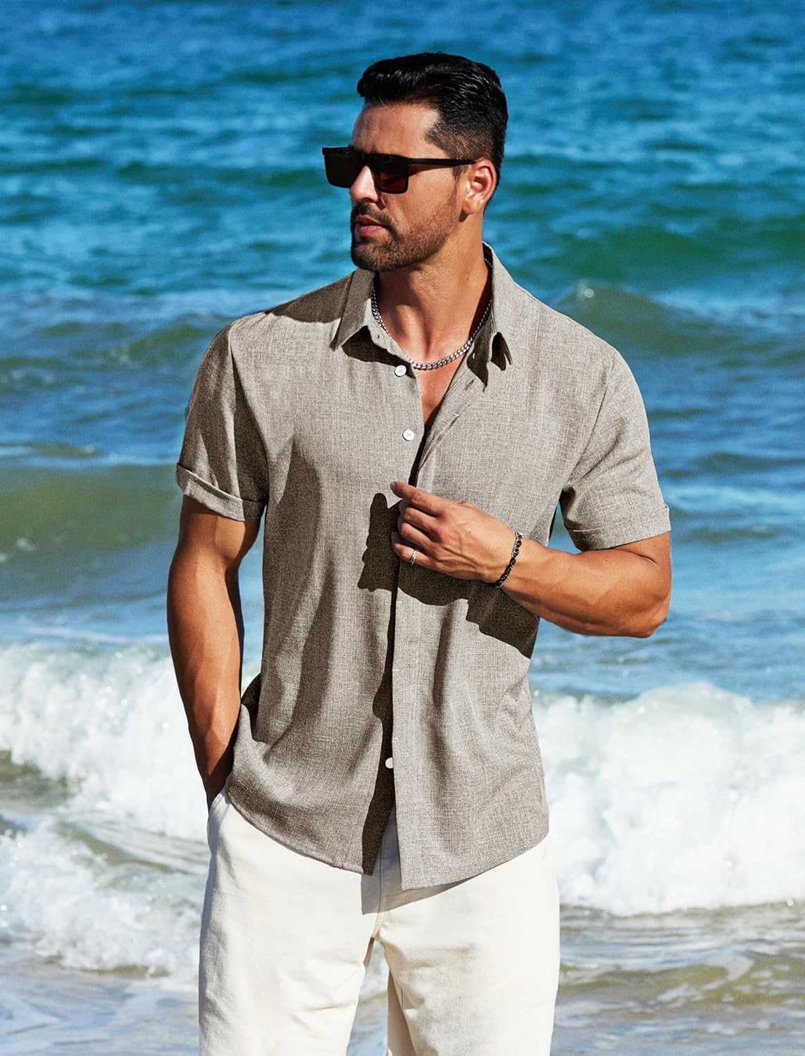 【Soft Material】Wear our men's casual button-down shirt to match your summertime look! We use linen and rayon to make our mens vacation outfits. Comfortable and breathable. It's ideal for beach holidays and informal get-togethers