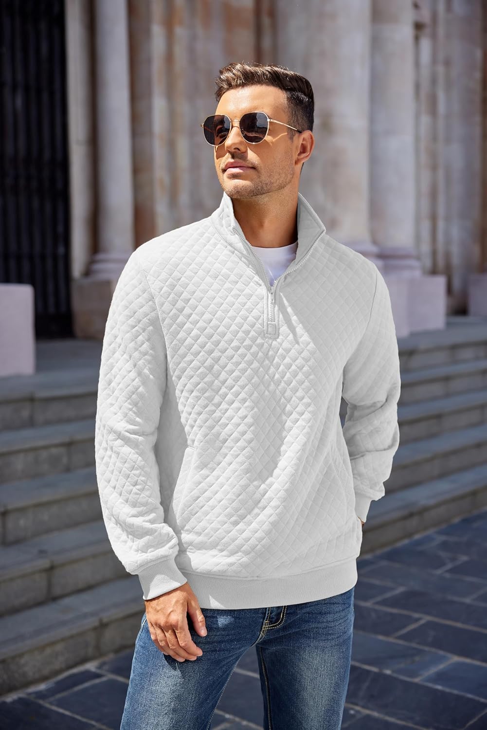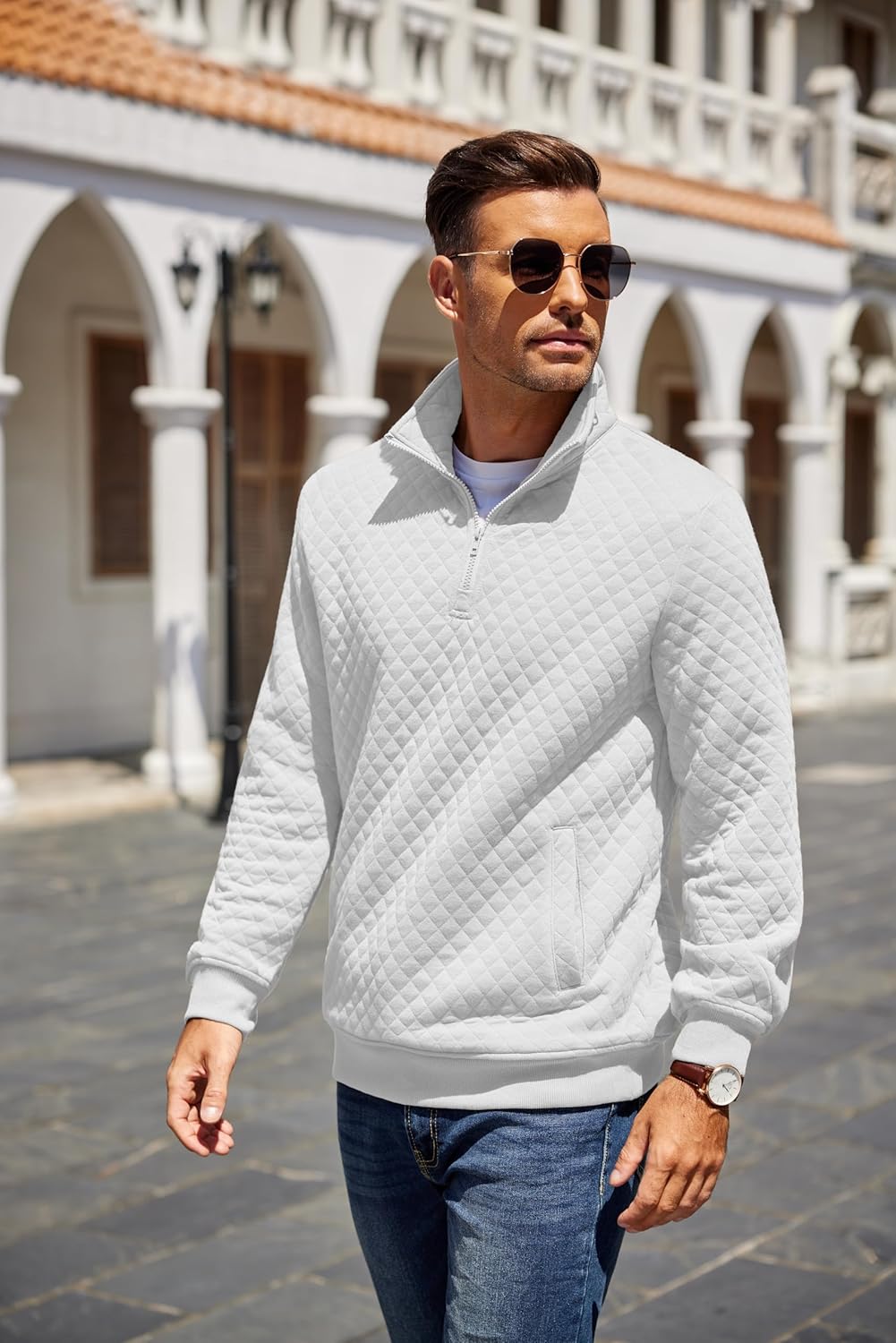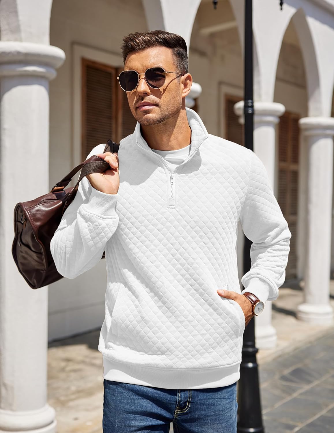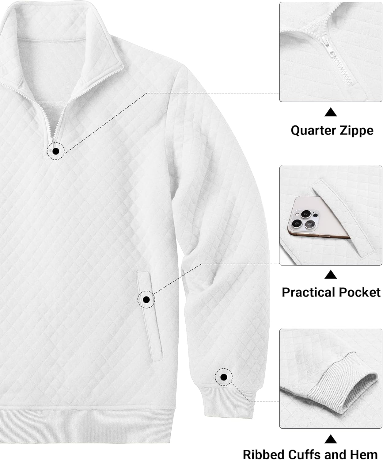 【FEATURES】: Men's quarter zip polo comes with a classic zip up closure, modern quilted pattern. The ribbed cuffs and hem ensure a secure fit. Mens quarter zip sweater includes a kangaroo pocket to hold small items like keys, phone, wallet, etc.