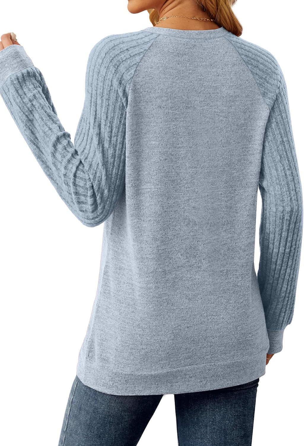 ✦Features: Raglan long sleeve tunic tops, lightweight and cozy sweaters shirts, loose fit crewneck sweatshirts. The patchwork textured sleeves add a stylish touch, making it stand out from other plain t-shirts.