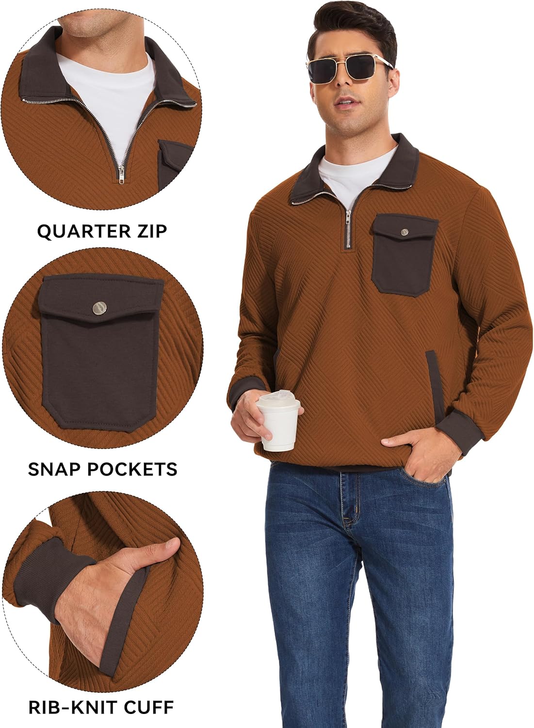 【Multiple Occasion】: Mens quarter zip sweatshirt with nice accent colors great for daily, casual wear, home, work, job, school, outdoor sports, running, hang mut, shopping, party, holiday, travel, fashion street look,etc.