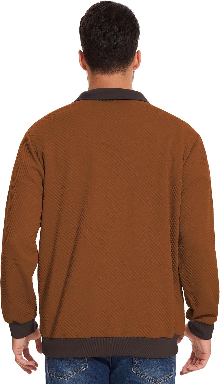 【Design】:Mens 1/4 zip pullover features a modern geometric pattern, combined with multi-functional snap pocket and quarter-zip design, making it ideal for both casual outings and formal events. The stand collar adds a touch of refinement, while the two side pockets provide convenient storage for keys, phones, wallets, and other small items.