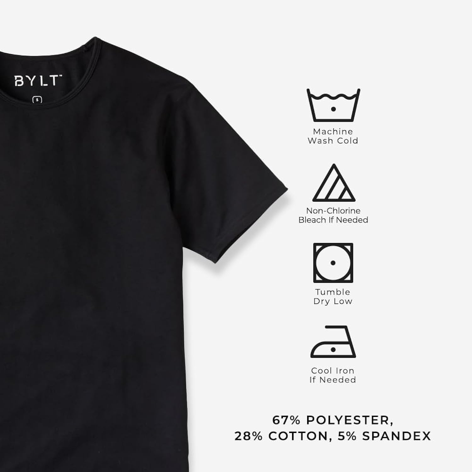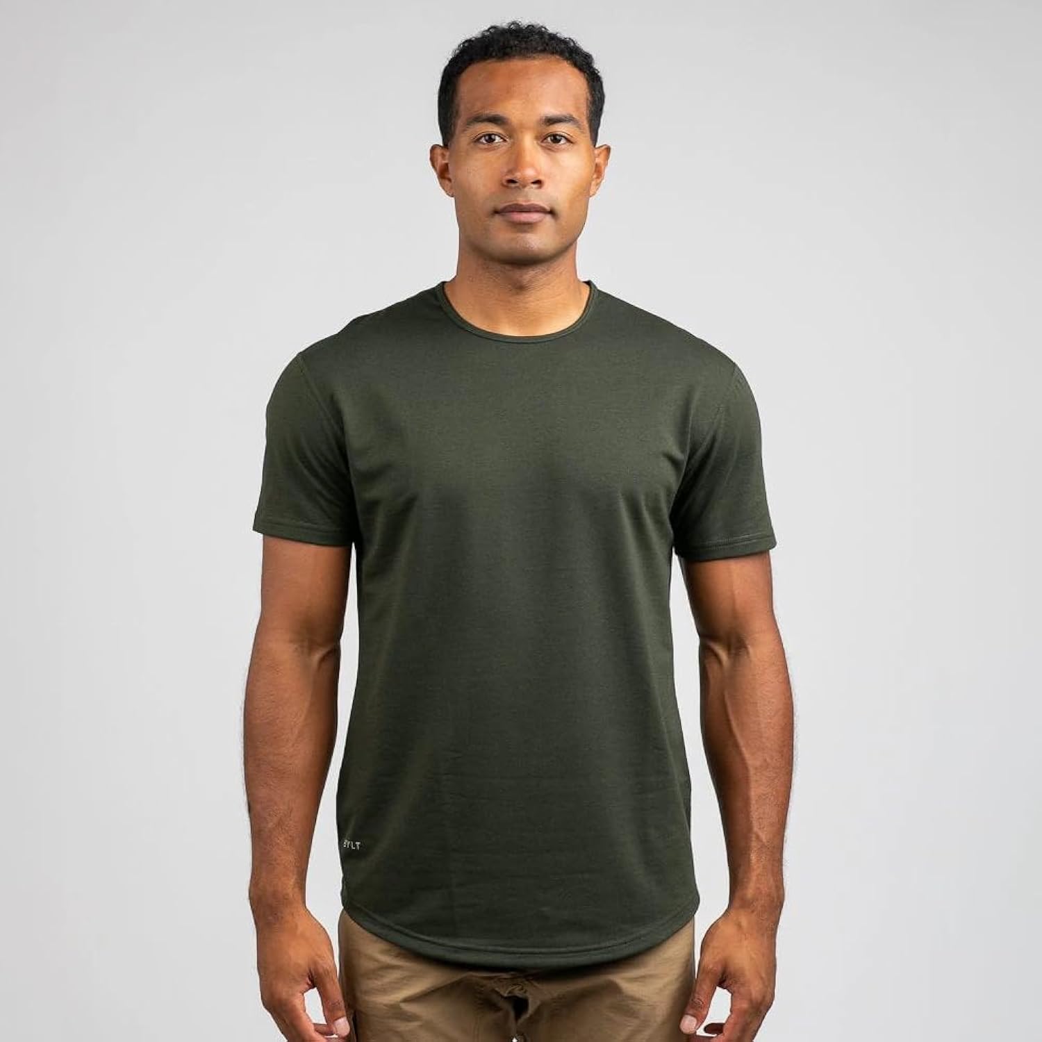 MODERN ATHLETIC FIT – Elevate your wardrobe with this BYLT Drop-Cut Basic Men's T-Shirt, a classic tee for men designed for everyday comfort and modern style. Designed with a tapered profile and elongated drop-cut hem, this tee offers a flattering athletic cut that moves with you while maintaining a clean, structured silhouette.