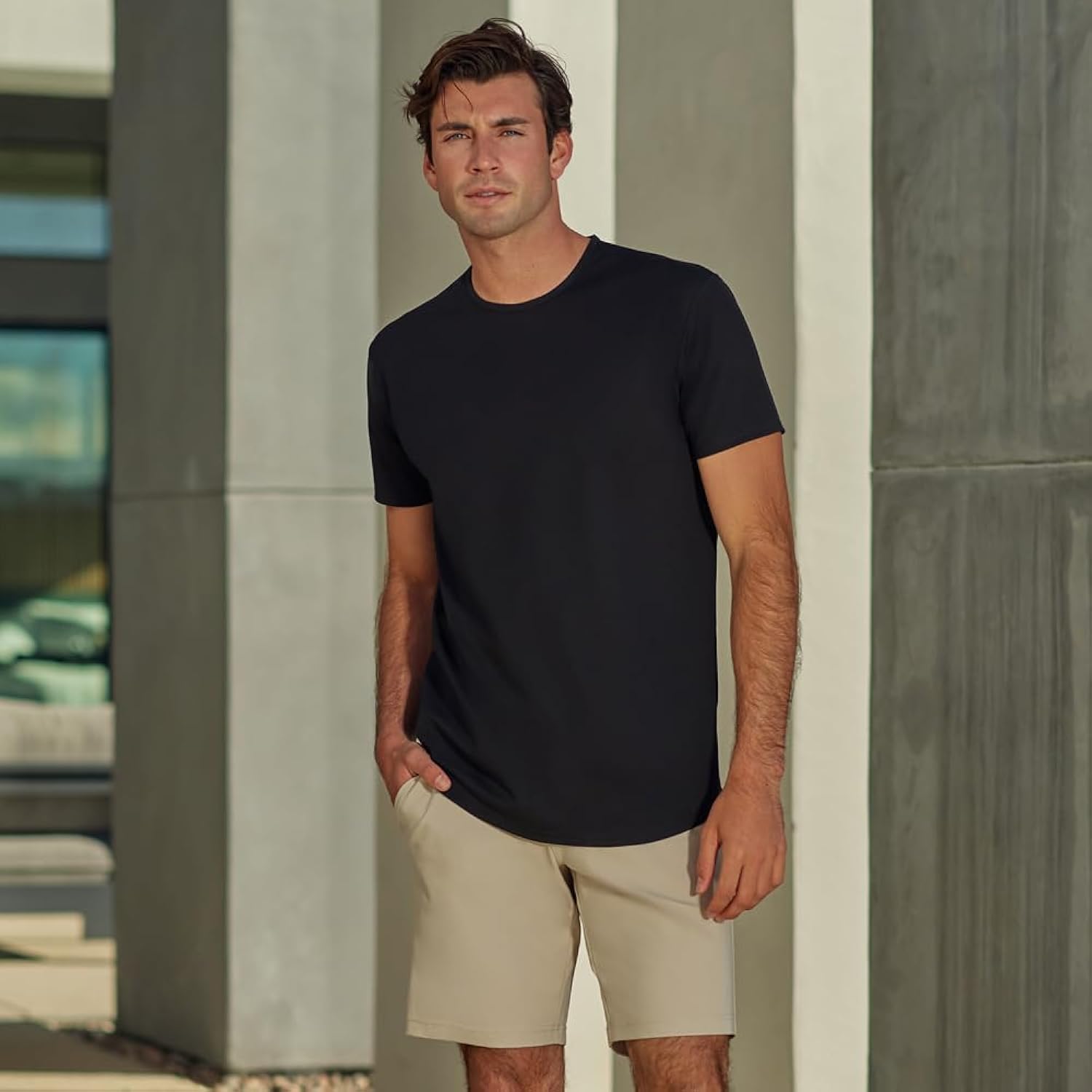 ULTRA-SOFT PERFORMANCE FABRIC – Made with our Signature Blend of 67% Polyester, 28% Cotton, 5% Spandex, this mens soft t shirt delivers a breathable, comfortable feel with natural moisture-wicking and 4-way stretch. Engineered for flexibility, this longline t-shirt for men moves with you, providing enhanced breathability and ultra-stretch for all-day ease.