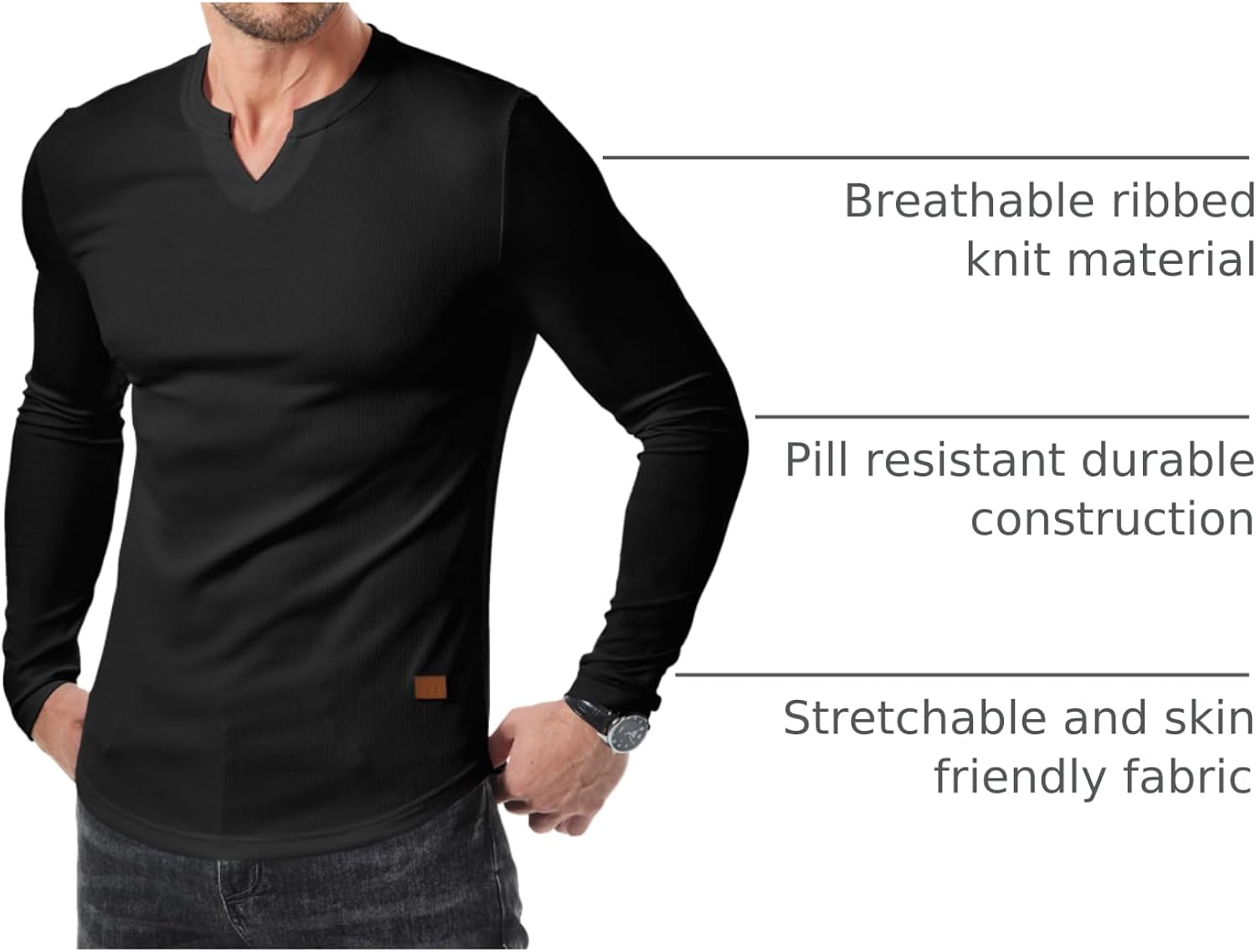 Muscle Shirt Design: Unique v-neck long sleeve t-shirts in solid colors, perfect for sports, work, vacations, and casual occasions. Essential for your spring and fall wardrobe.