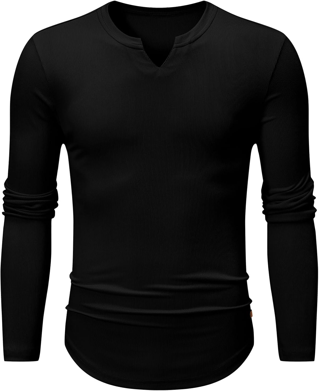 JMIERR Mens Long Sleeve Muscle T Shirts Casual V-Neck Longline Ribbed Tee Shirts