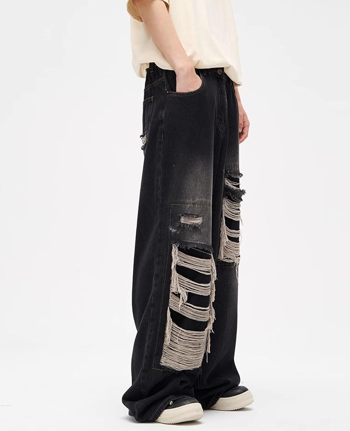 Occasion: This ripped baggy jeans is simple but stylish, it is a all-match item that every fashionable boys and girls will choose anywhere, such as school, vacation, party, dating, street,club, daily life, work ect