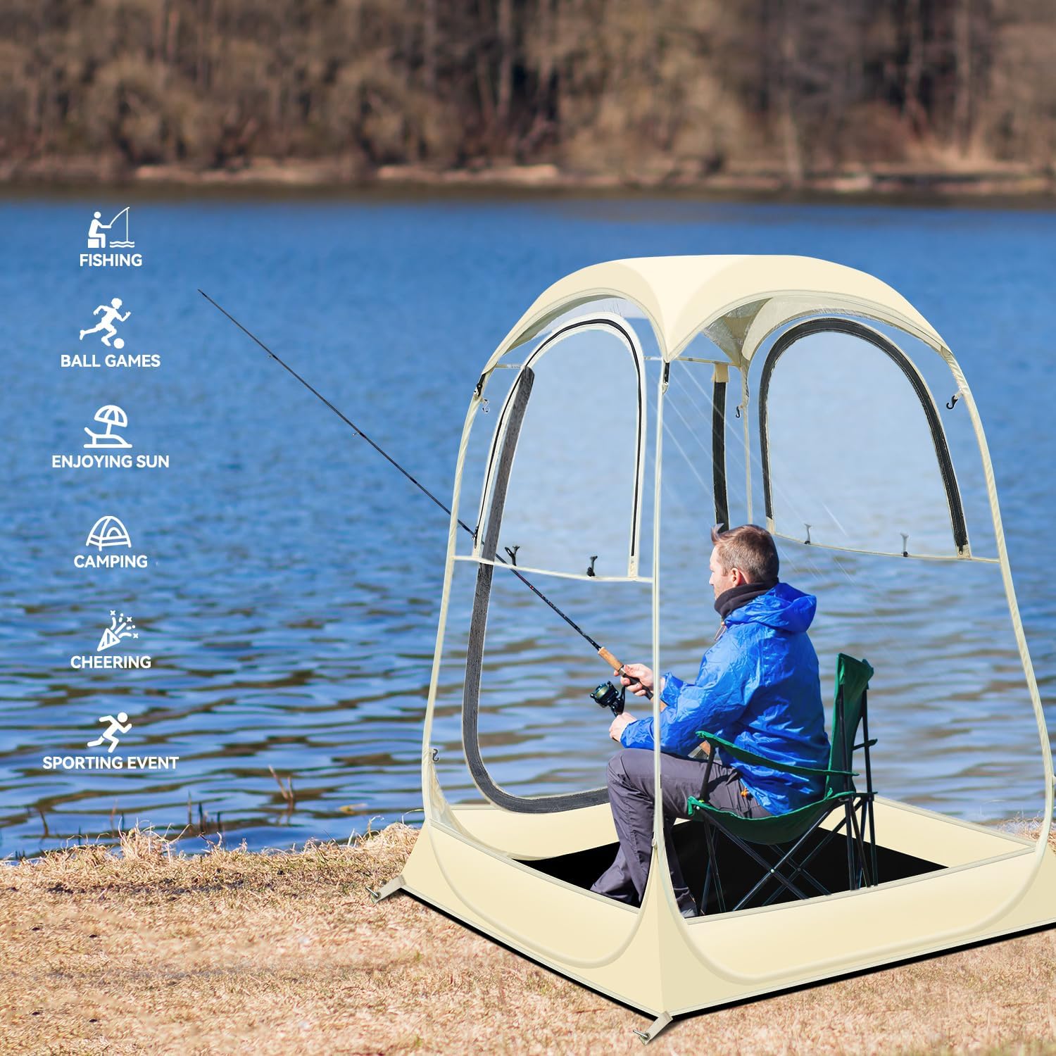 Sports Tent Pop Up Clear Bubble Tent All Weather Sport Shelter for Outdoor Sports Events Fishing, Quick Setup & Waterproof...