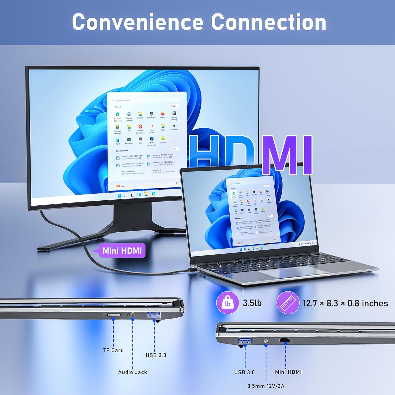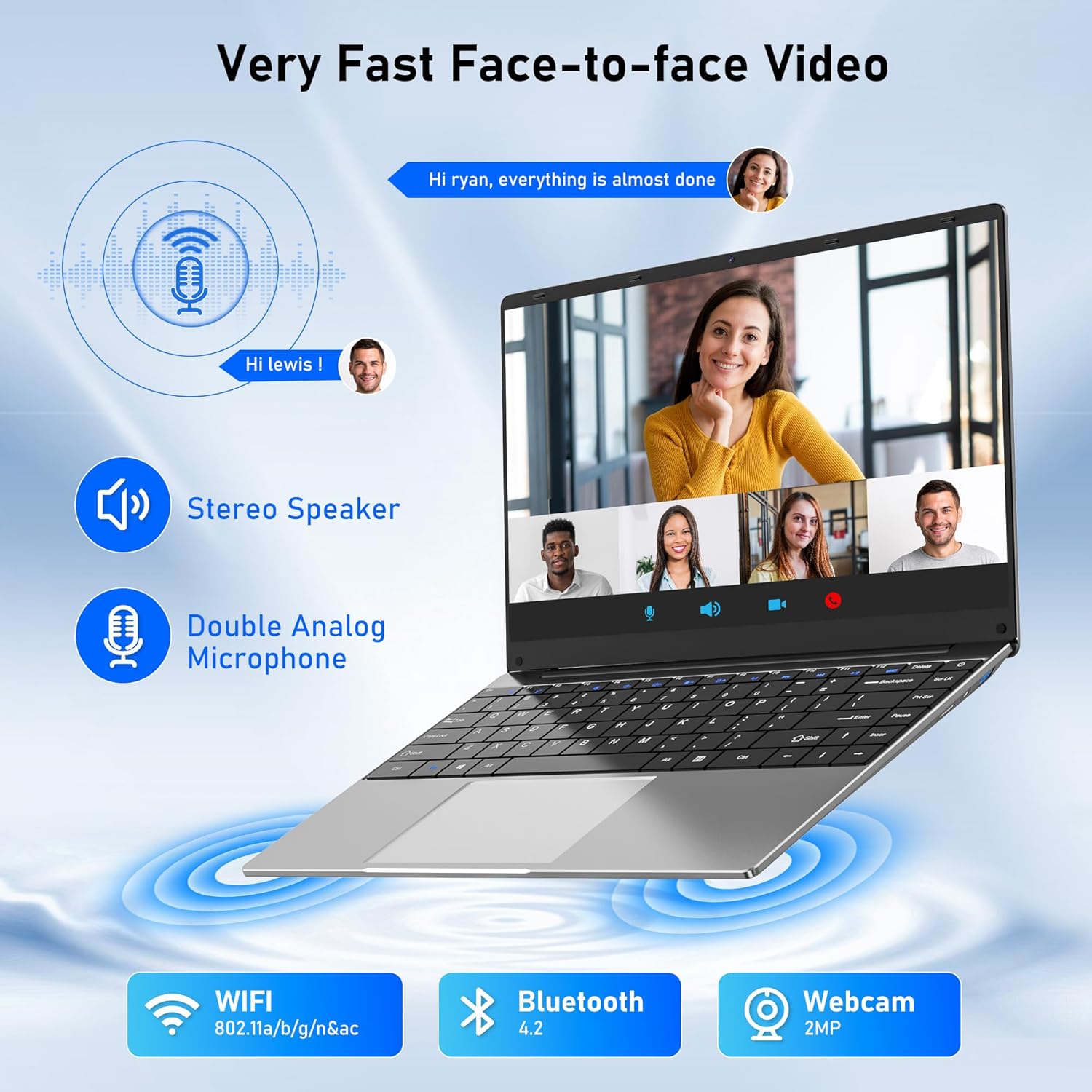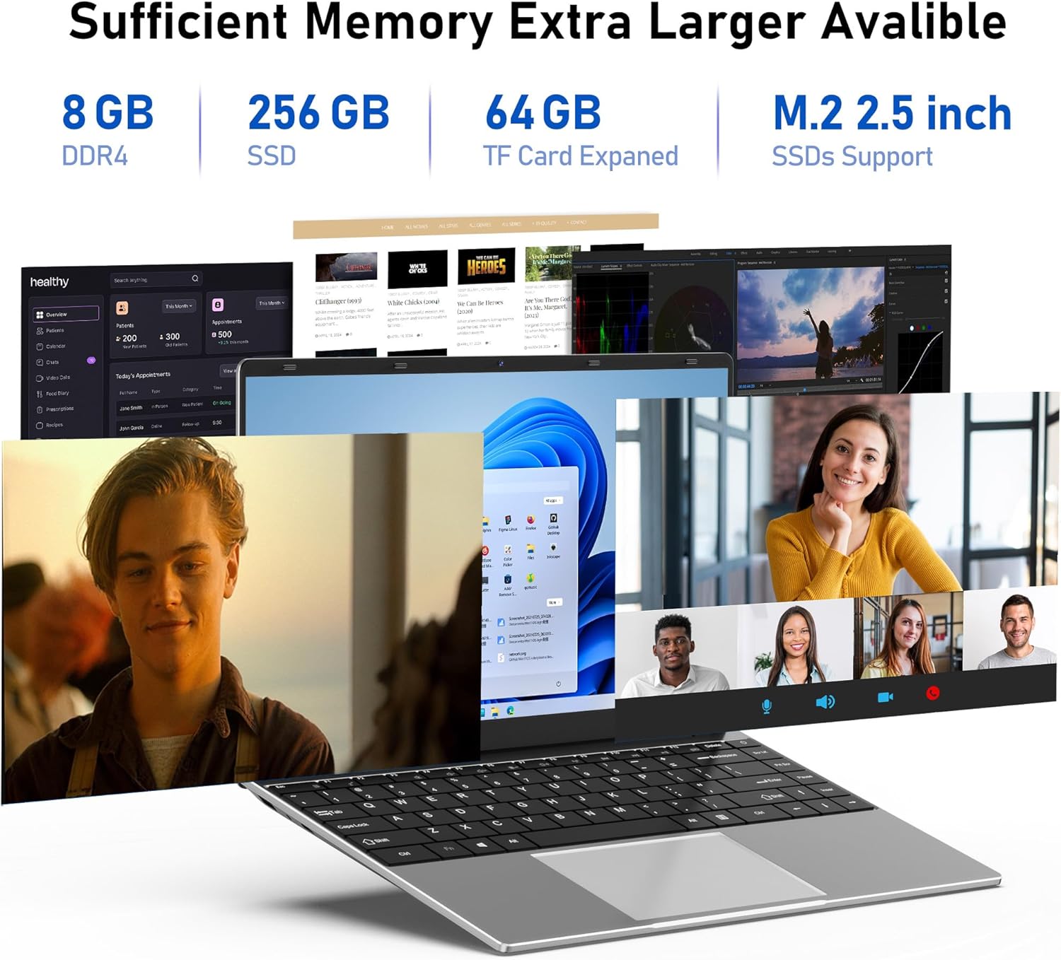 【RAM & Storage】Based on 8GB Ram memory and 256GB SSD storage, our laptops also supports 64 GB TF card expansion and 2TB external hard drive. The laptop computers allows you save massive daily files, transfer data and load software rapidly.