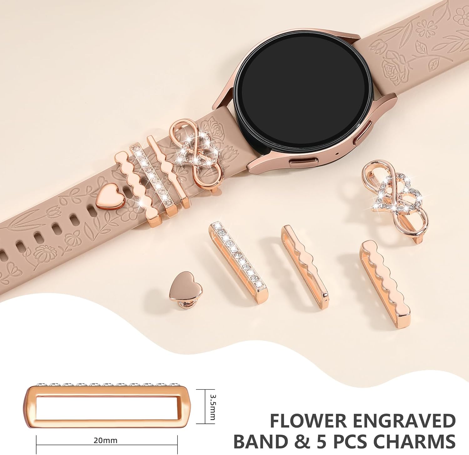 【Fit for All 20mm Watch Band】DaQin elegant engraved bands with decoration for samsung watch bands for women are wildly compatible with Samsung Galaxy Watch 7 /Galaxy Watch 6/Galaxy Watch 4/Galaxy Watch 5(40mm 44mm),Galaxy Watch FE(40mm),Samsung Galaxy Watch 5 Pro 45mm,Galaxy Watch 6 Classic Band (43mm 47mm), Galaxy Watch 3 41mm, Galaxy Watch 4 Classic (42mm 46mm), Galaxy Active 2 Watch (40mm 44mm),Samsung Gear S2 Watch; Also works with any other smartwatch model with 20mm lugs