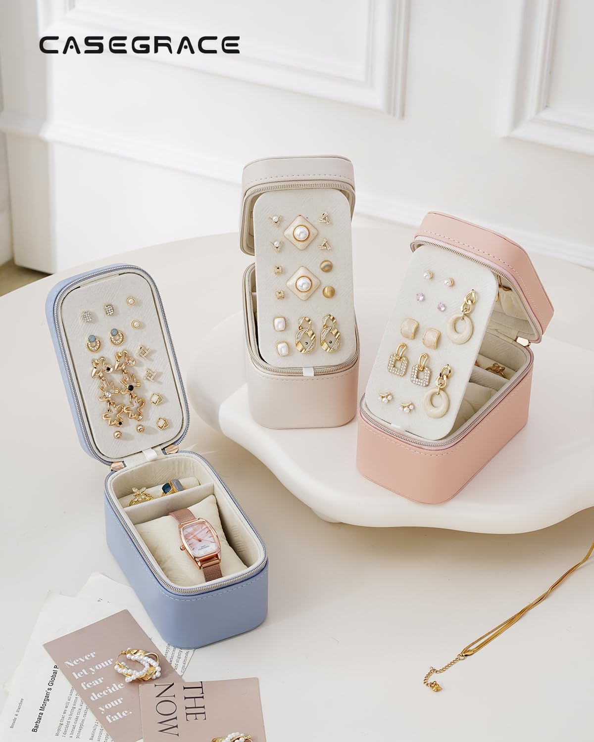 CASEGRACE Small Jewelry Travel Case,PU Leather Portable Mini Jewelry organizer Box for Necklace Rings Earrings Watch,The b...