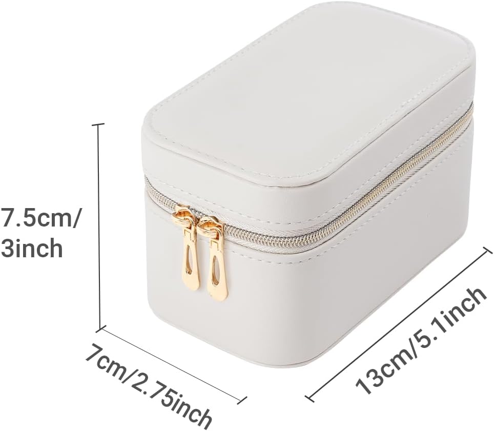 MINI PORTABLE ORGANIZER BOX: The jewelry case measures 5.1 x 2.75 x 3 inches, perfect for travel use, it can store your jewelry in a safe and orderly way without taking up too much space in your luggage.