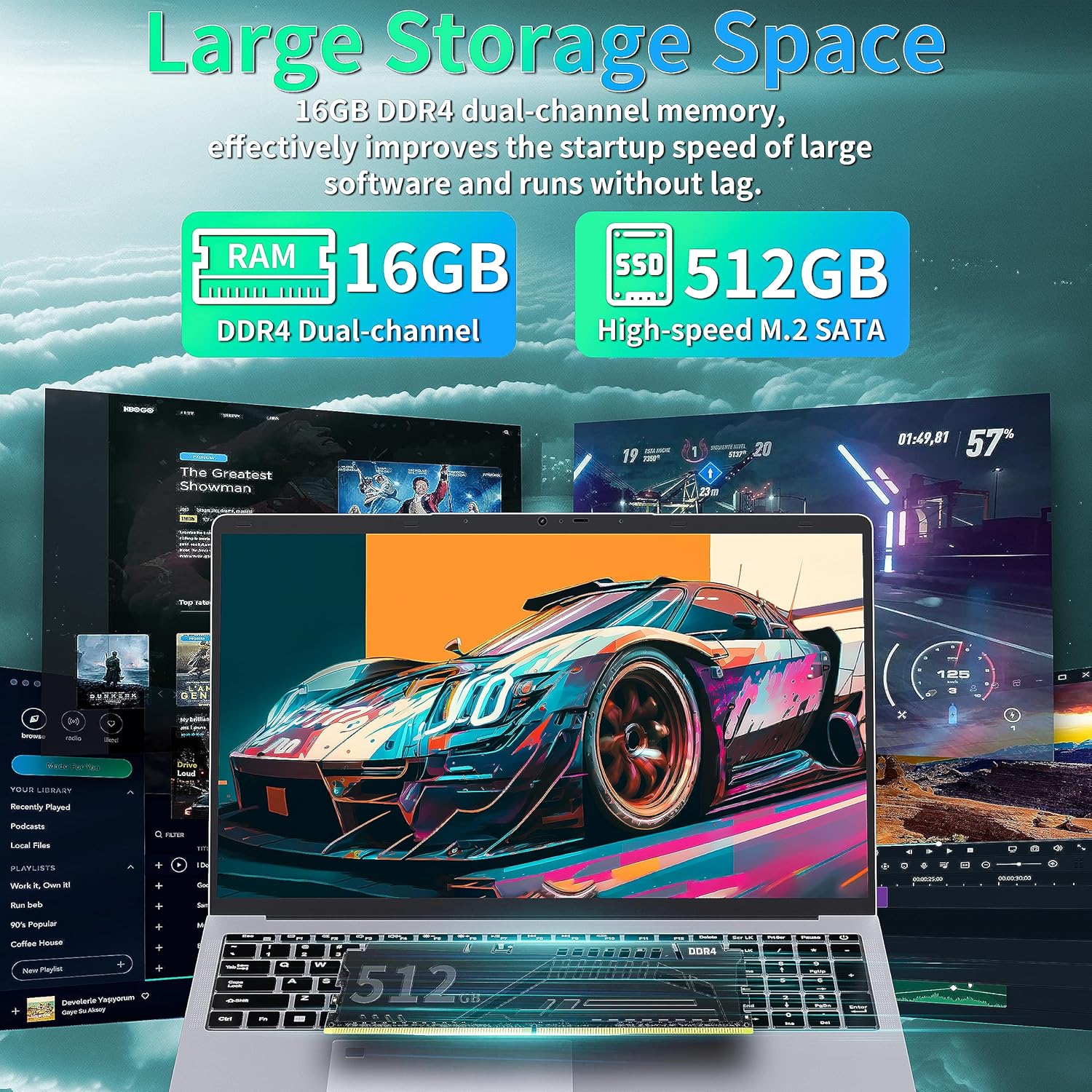 【?????????????? ?????????? ?????? ??????????: ???????? ?????? ???????? ?????????????? ?????? ?????? ???????????????????? ??????????????!】Elevate your computing to new heights with a robust 16GB DDR4 RAM, making multitasking a breeze and programs zip through tasks effortlessly. Whether work or play, conquer it all with ease! SSD Magic, Limitless Realm: Opt for the optional 512GB or 1TB SSD configuration, unlocking lightning-fast storage for your documents, media files, and data. Expand Your Horizons: Need more room? Our laptops support a 512GB TF card expansion, giving you the freedom to grow your storage on demand.