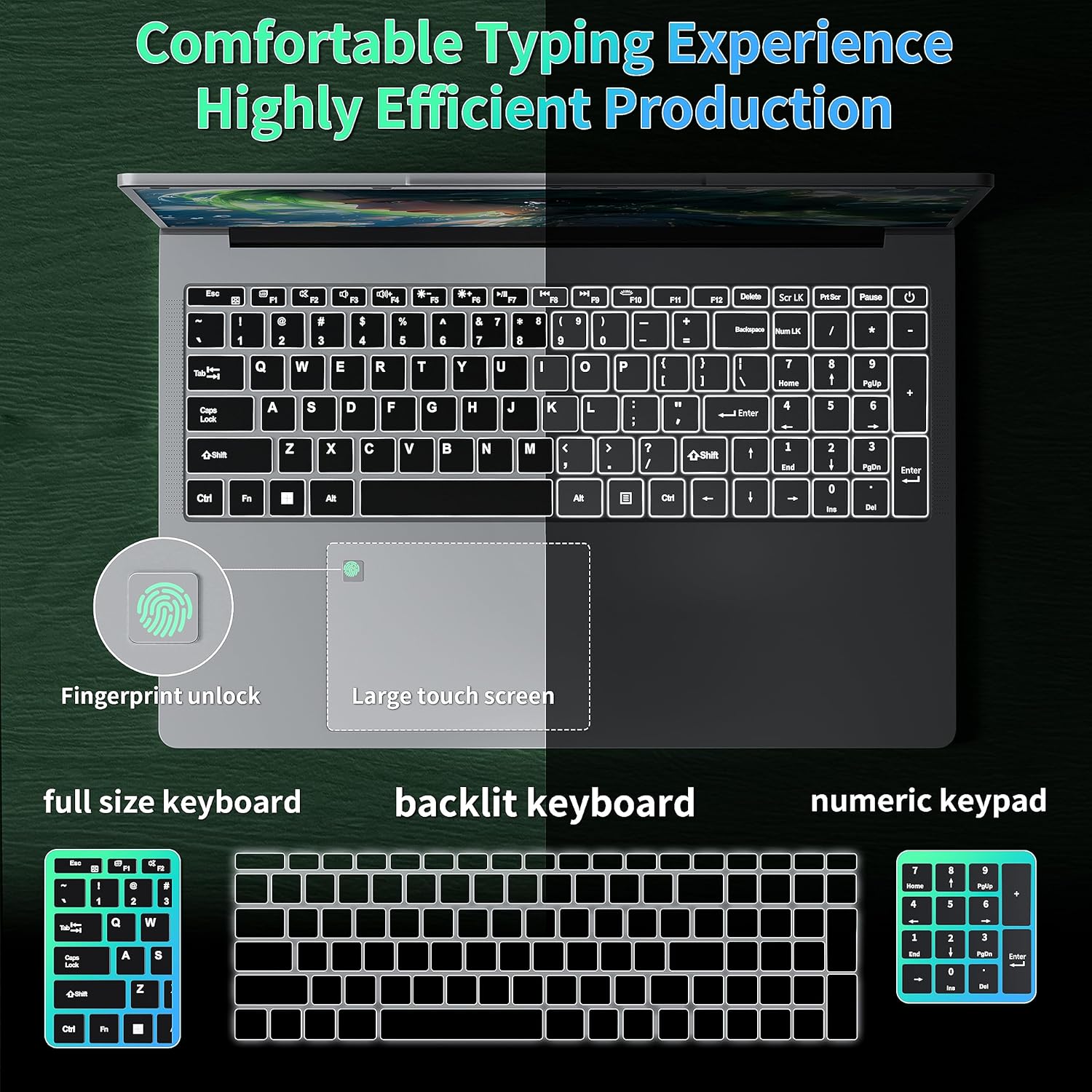 【?????????????? ???????? ????????????????????: ?????????????? ????????????????, ?????????? ????????????????, ?????? ???????????????? ????????????????????????!】Experience luxury with the black chocolate backlit keyboard, full-size numeric keypad, and large, spacious touchpad. Built-in fingerprint recognition offers quick access, while the HD front-facing camera enhances video calls with clear visuals. Enjoy dual-band WiFi with 2.4G for reliable coverage and 5G for high-speed performance. Bluetooth 4.2 provides effortless connections to your devices, ensuring enhanced productivity and convenience.