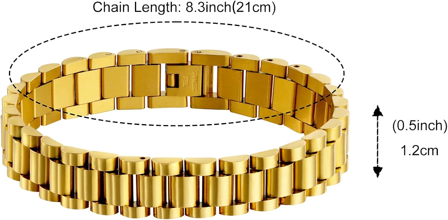 Bracelets Design: Our watch band bracelets are simple in design. This watch band inspired chunky chain bracelet is the ideal statement jewelry piece to elevate your look. Whether you wear it with formal attire for a business meeting or a casual look for a weekend, it shows off its unique charm