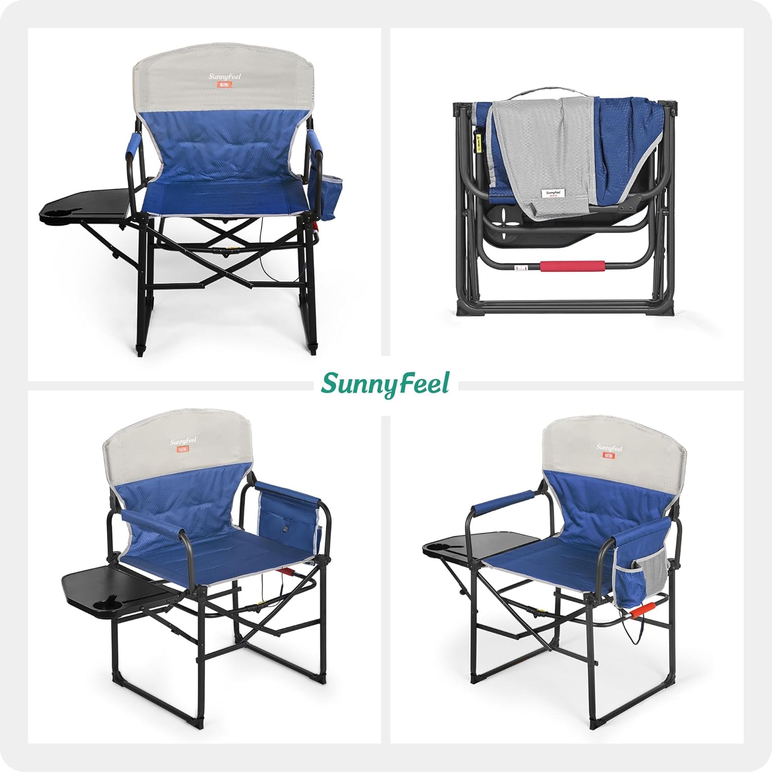 SUNNYFEEL Heated Camping Directors Chair, Heavy Duty,Oversized Outdoor Portable Heating Folding Chair with Side Table, Poc...