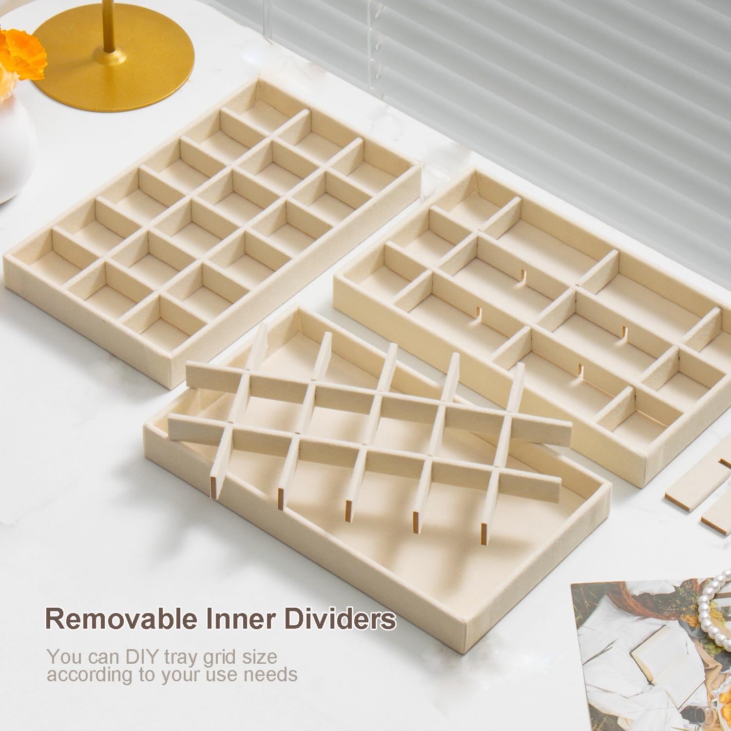 Removable Inner Dividers Design: You can resize the compartments of jewelry storage containers according to your personalized storage needs, keep jewelry organized, neatly displayed
