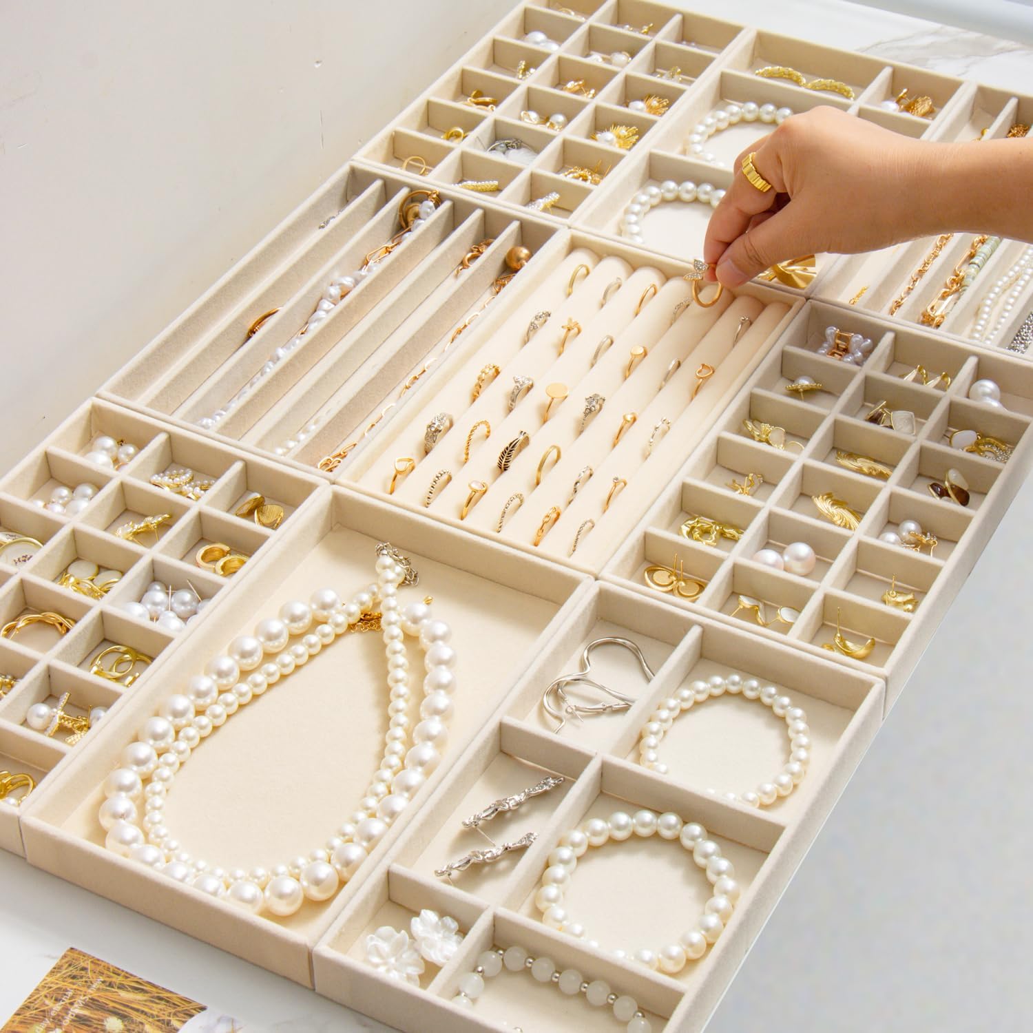 SPAKOWN Jewelry Drawer Organizer Inserts Set of 9, Jewelry Trays for Drawers Velvet Jewelry Organizer Tray Drawer Jewelry ...