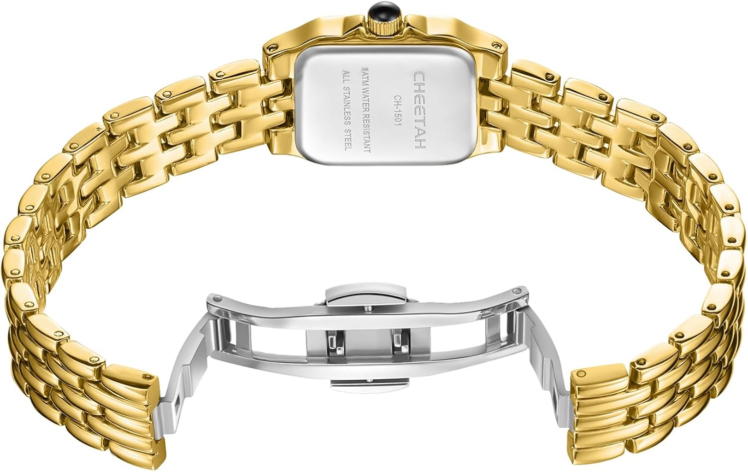 CHEETAH Gold Watches for Women with Small Vintage Bracelet, Rectangular Case Roman Dial