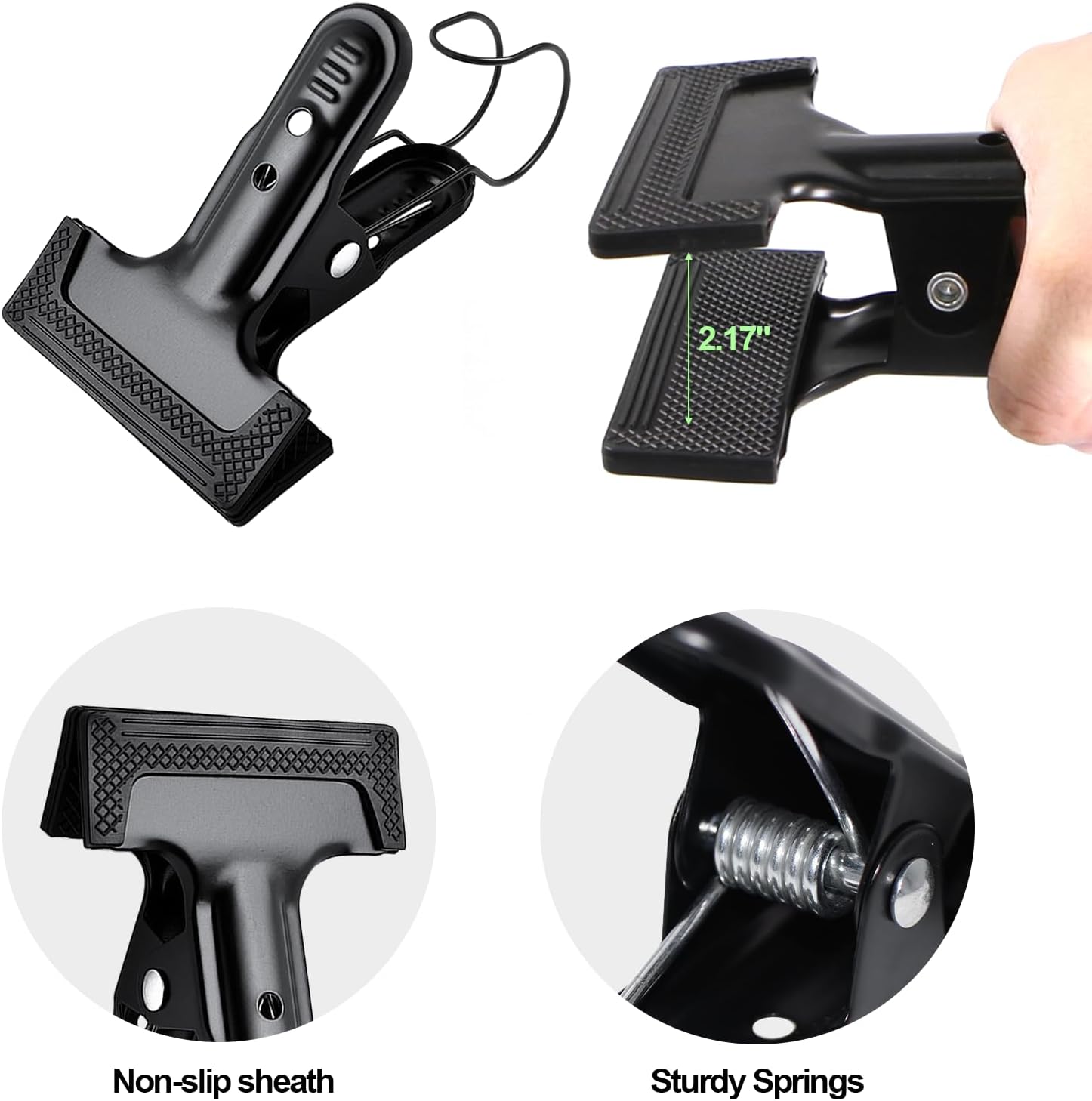 High Quality: These clips are made of high-strength steel, which is wear-resistant, durable, and long-lasting. The powerful spring provides a sturdy grip, while the rubber pad protects your equipment. It can hold anything for a long period of time.
