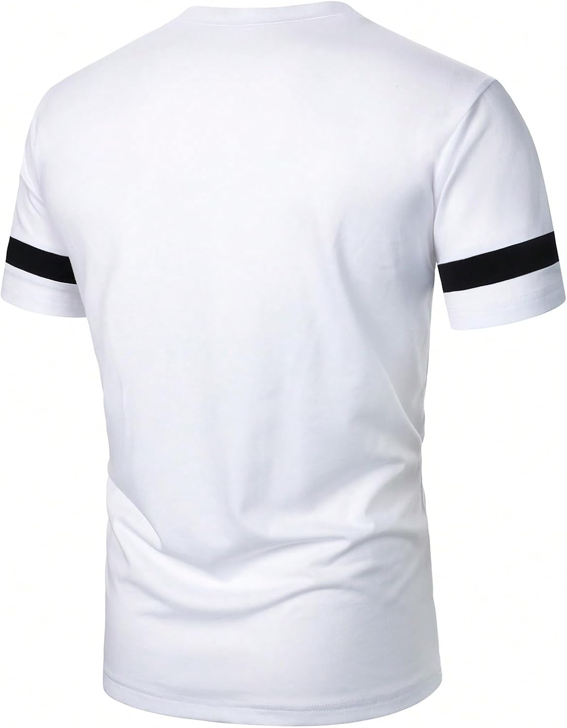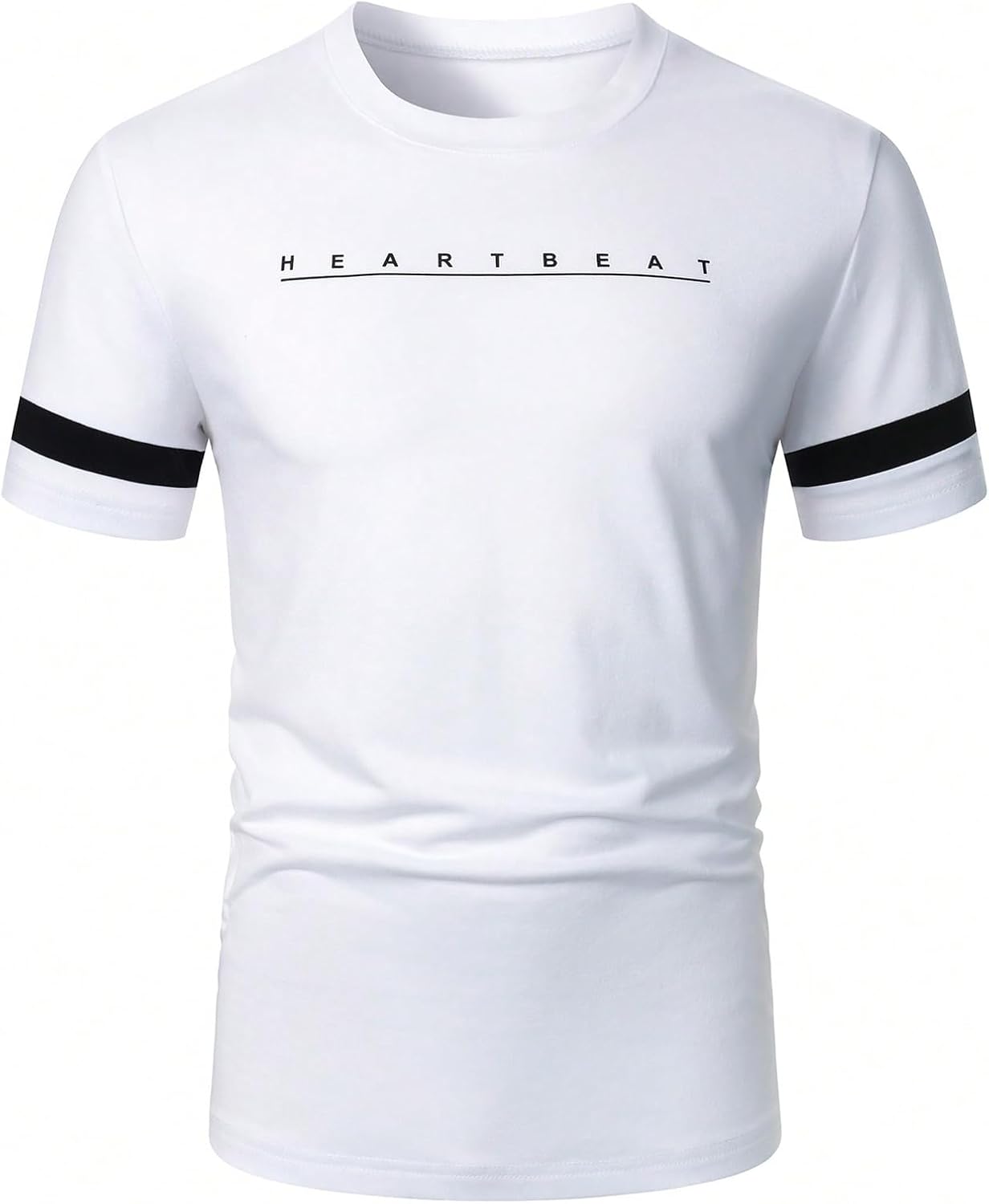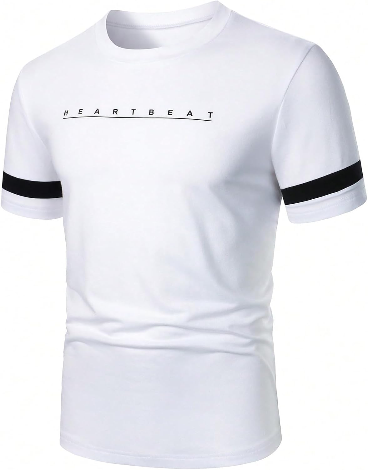 Crew Neck, Short Sleeve, Striped and Letter Print, Casual Business T Shirt