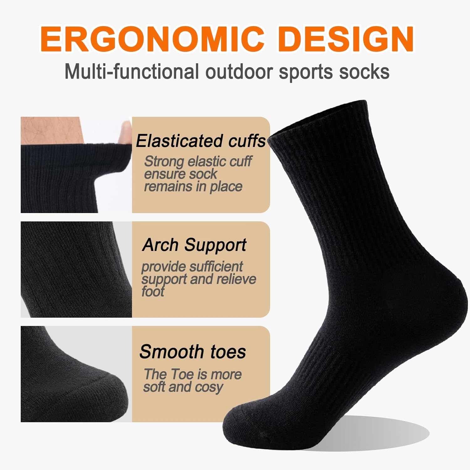 Durability Mid-calf Socks: Reinforced seamless stitching at the heel and toe reduces friction and ensures higher wear resistance without worrying about "holes". Even after multiple washes, the socks remain soft and warm, so you can easily handle any sporting challenge.