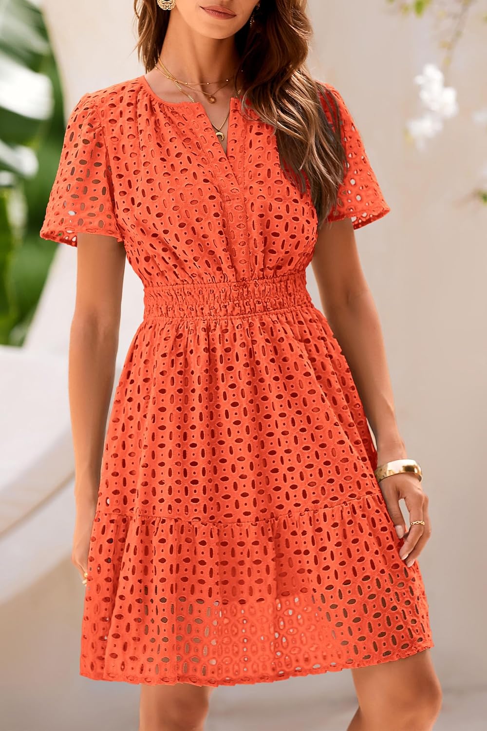 FEATURES: Elegant Summer Dresses For Women/ Short Sleeve V Neck Dress For Women/ Eyelet Lace Dress For Women/ Beach Wedding Guest Dresses For Women/ Empire Waist Dress For Women/ Vacation Dress/ Womens Summer Outfits/ Ruffle Dress Women/ A Line Dresses For Women
