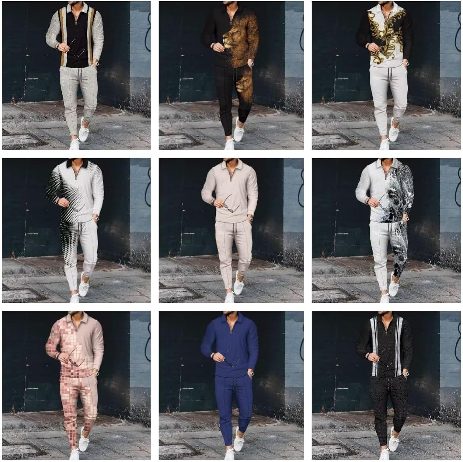 FEATURES: 3D painting, fashionable and novel,Mens 2 piece athletic tracksuits:long sleeve half zip polo sweatshirt , Pants with full length, 2 side pockets, elastic waist design with a drawstring to maintain high performance in sports.