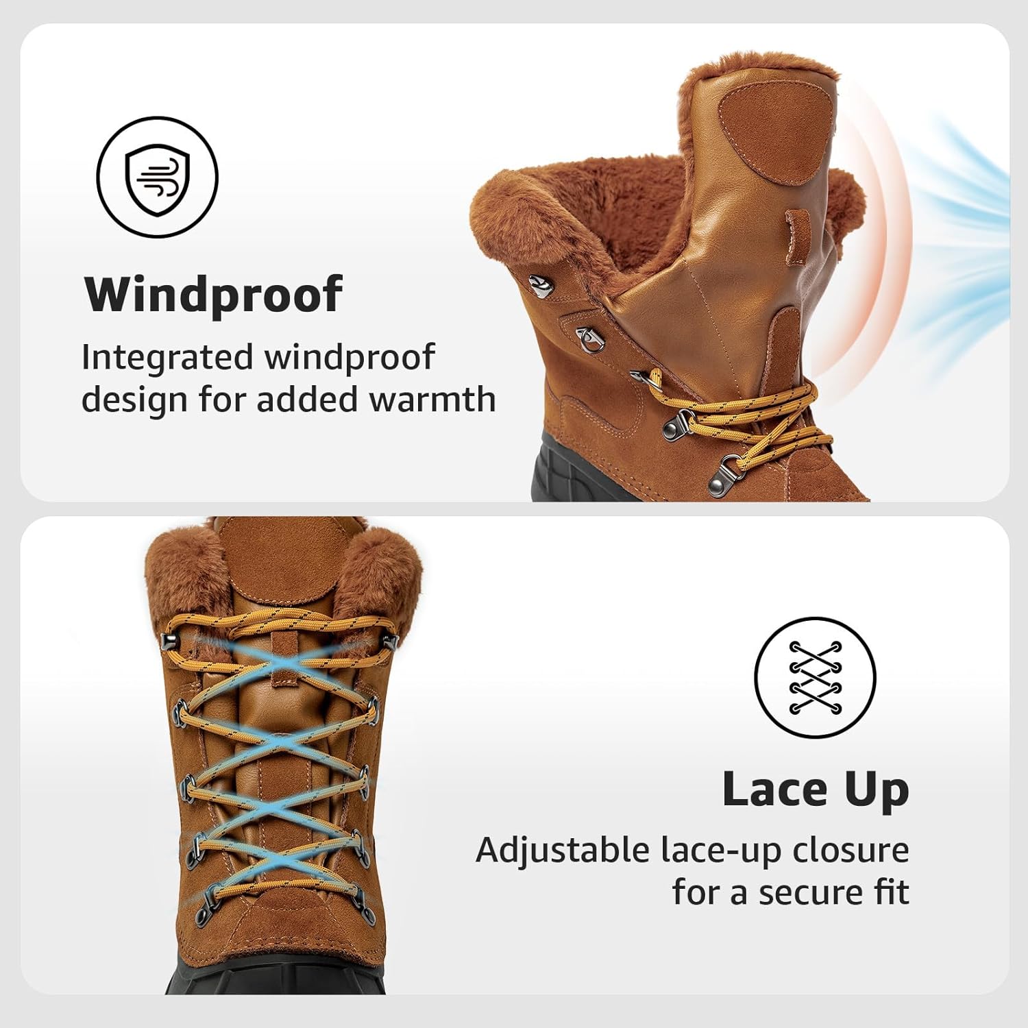 Waterproof & Genuine Leather: Crafted with durable waterproof genuine leather and suede, keeping your feet dry and comfortable in snow, slush, or rain. Perfect for daily commuting, outdoor work, and winter adventures