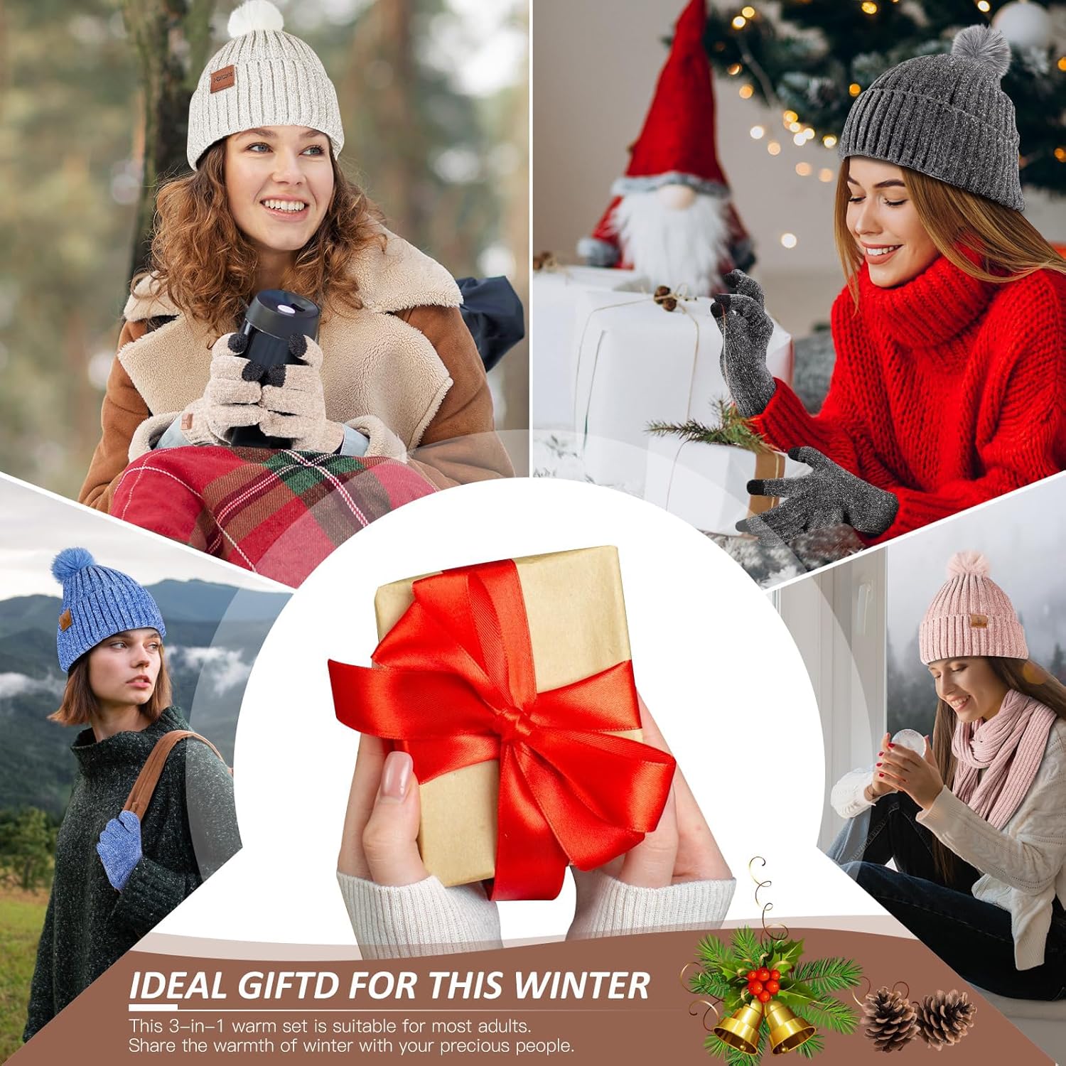 LackBlue Womens Winter Beanie Hat Scarf Touchscreen Gloves Set Knit Warm Skull Caps Long Neck Scarves for Women Men