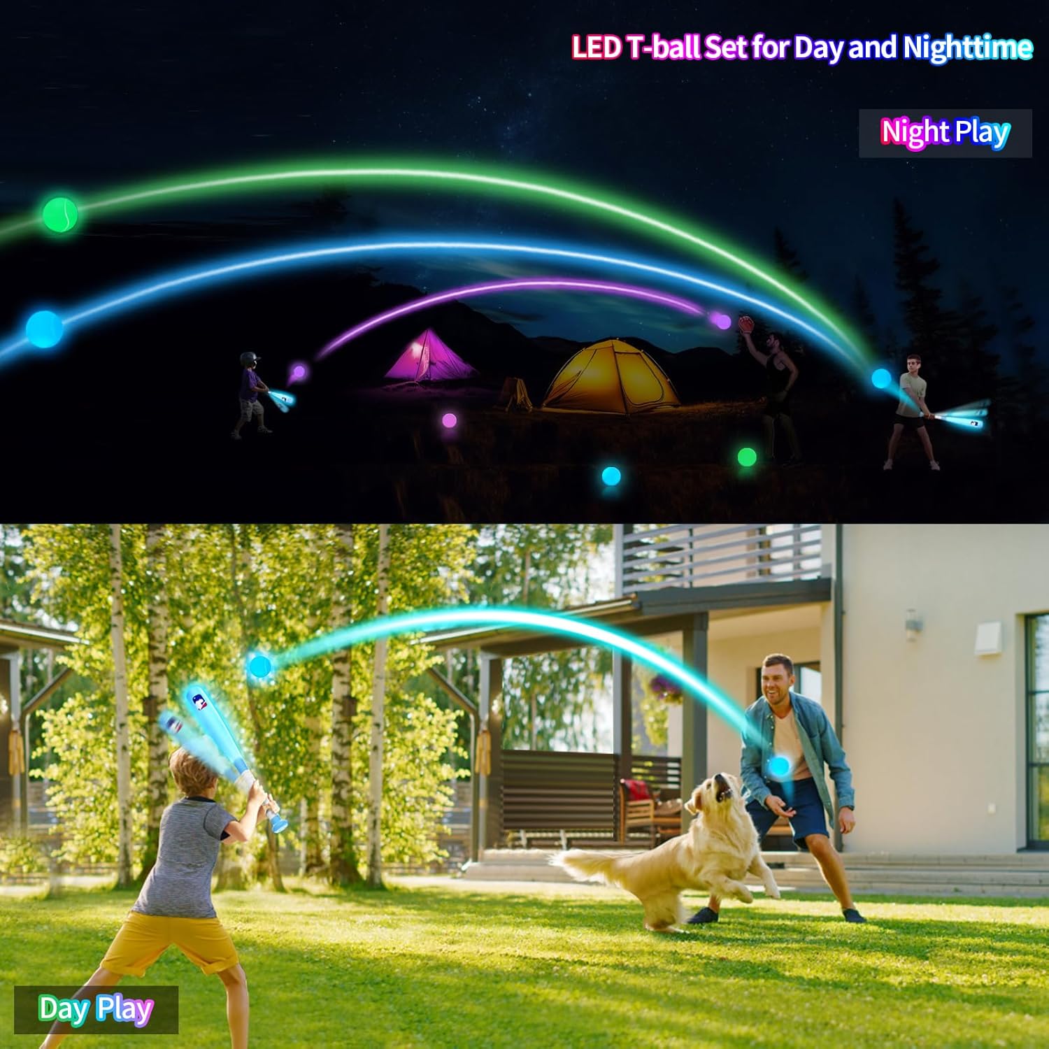 LED Game Changer: The standout feature of this light-up tee ball set is its innovative, glow-in-the-dark baseball bat and balls. Usable both day and night, this baseball toy allows kids to enjoy baseball even in low-light conditions like dusk, and night. This transforms traditional kids' outdoor play into an exciting, illuminated experience, perfect for any time of the day