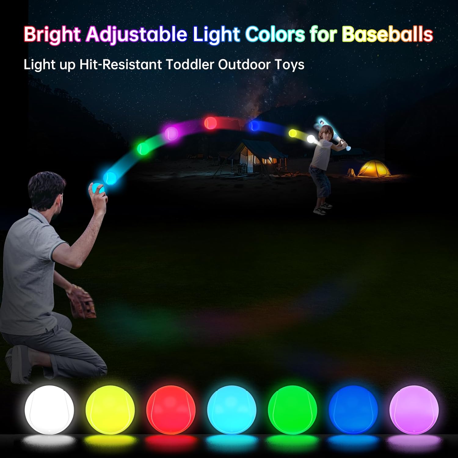 Adjustable Light Color: The baseball's lighting colors are adjustable, simply touch the switch button to toggle between 7 different colors. It also doubles as a night light to decorate toddler's rooms, with the baseball bat handle detachable for use as a lighting tool outdoors