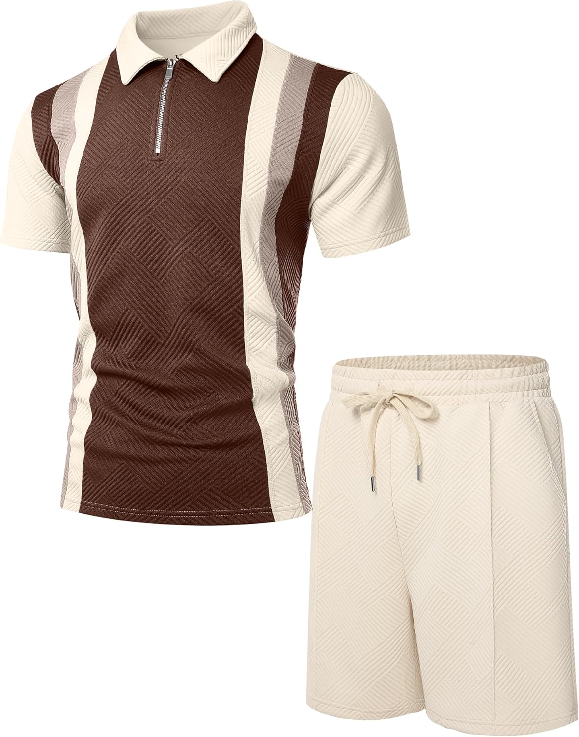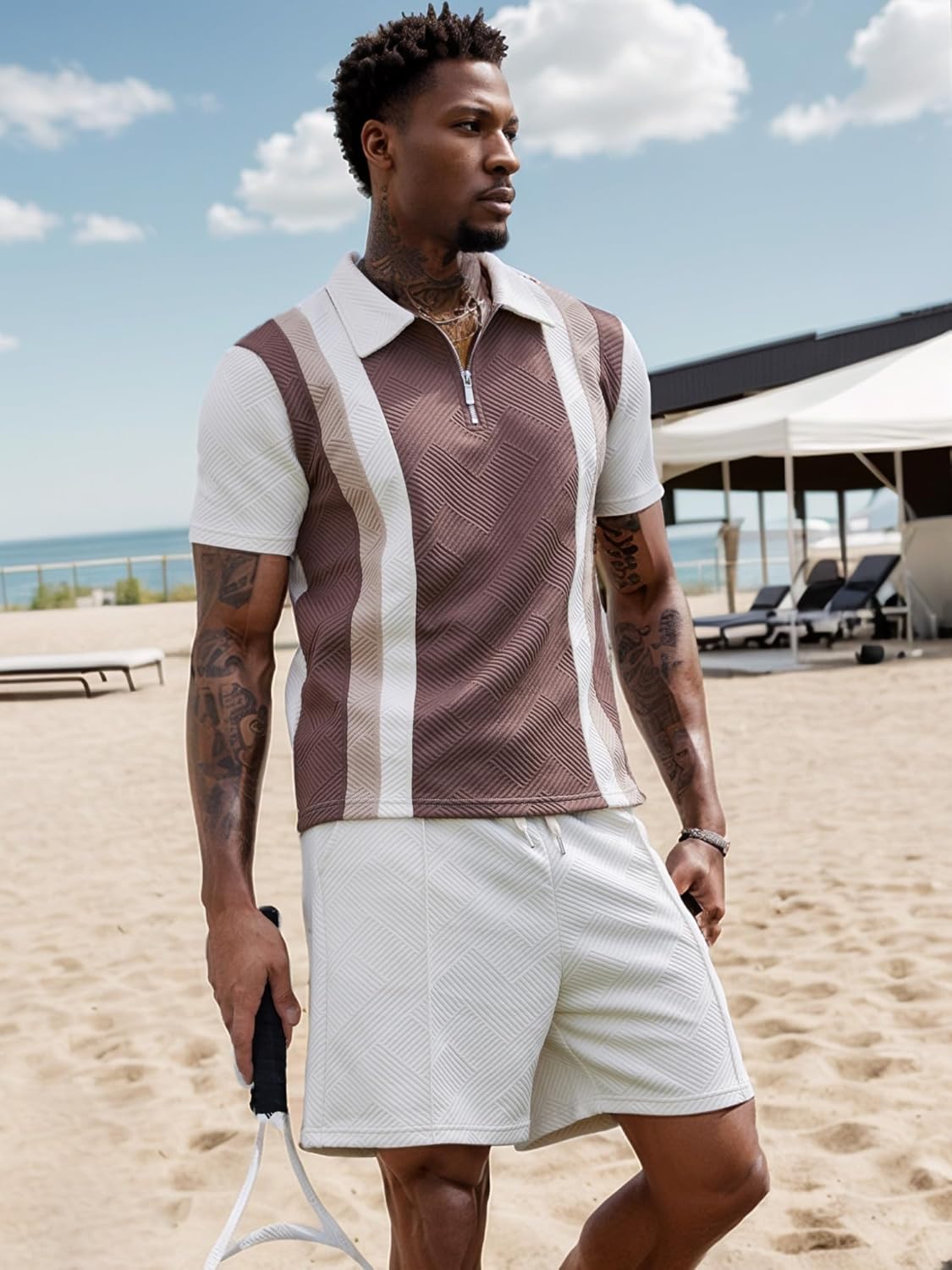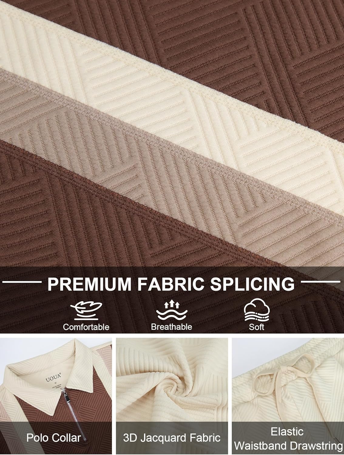 Stylish and Timeless: Our men's track suits 2 piece set is an embodiment of trendy and timeless design, featuring a 3D striped jacquard craftsmanship. The retro polo collar and front quarter zipper add sophistication to your look, catering to diverse fashion tastes.