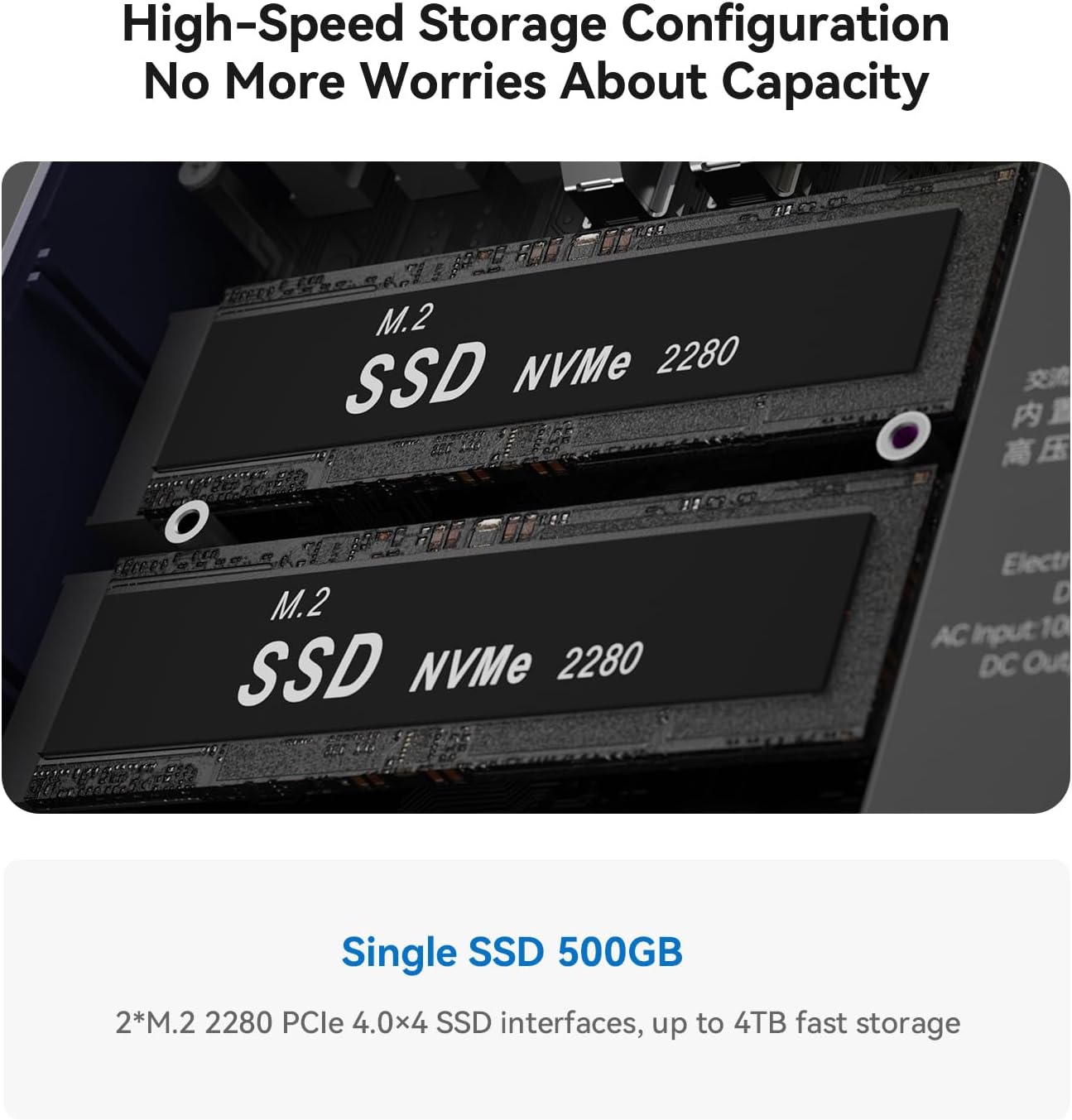 【High capacity & Expansion Options】The 12450h mini computers is equipped with 24GB (12GB*2) LPDDR5 5200MHz RAM.The transfer rate of LPDDR5 is 35% higher than that of LPDDR4,ensuring smooth system operation.Software startup and data processing are faster.Install 500GB M.2 PCIe 4.0 2280 SSD,support dual-channel M.2 PCIe 4.0,up to 4TB (2 x 2TB, not included),high-speed storage and large capacity enable you to switch back and forth between more applications without stalling.