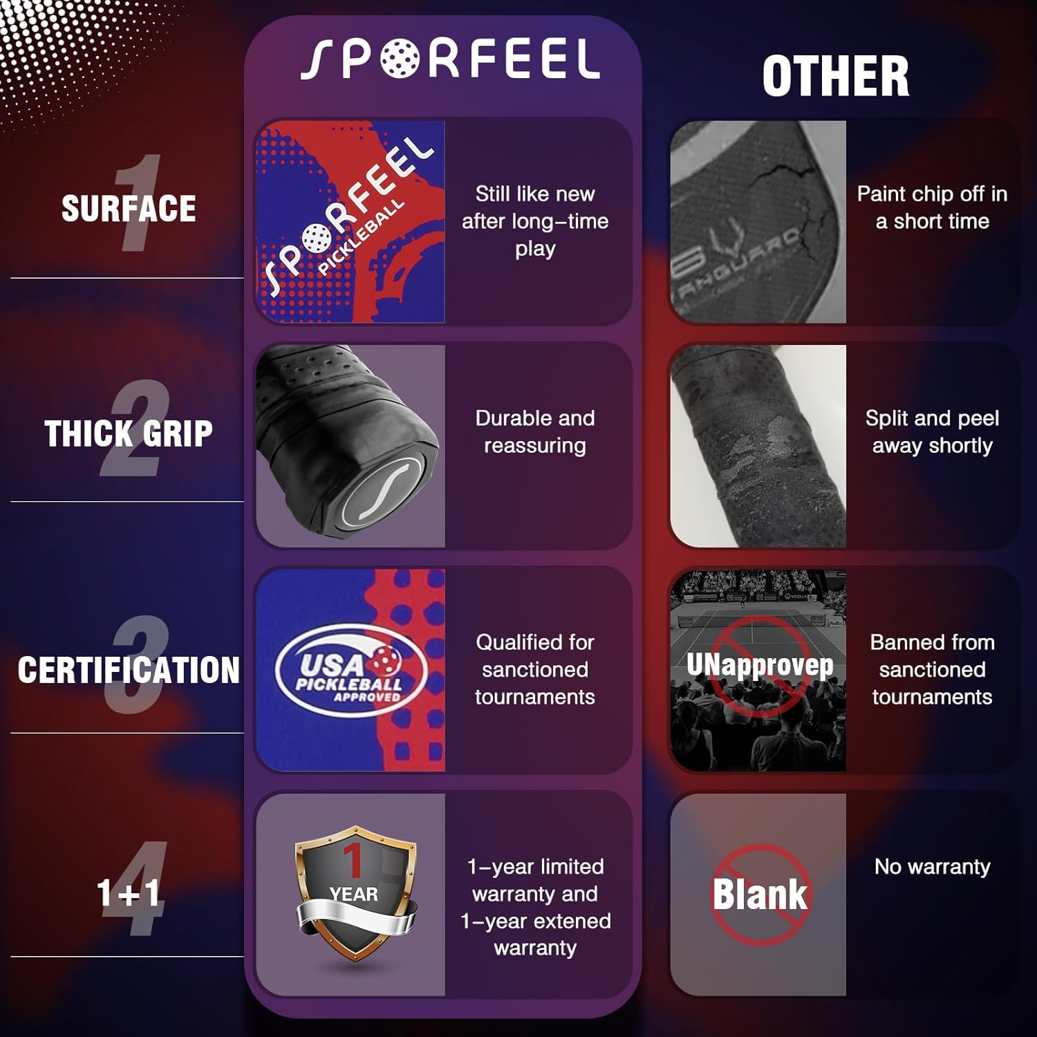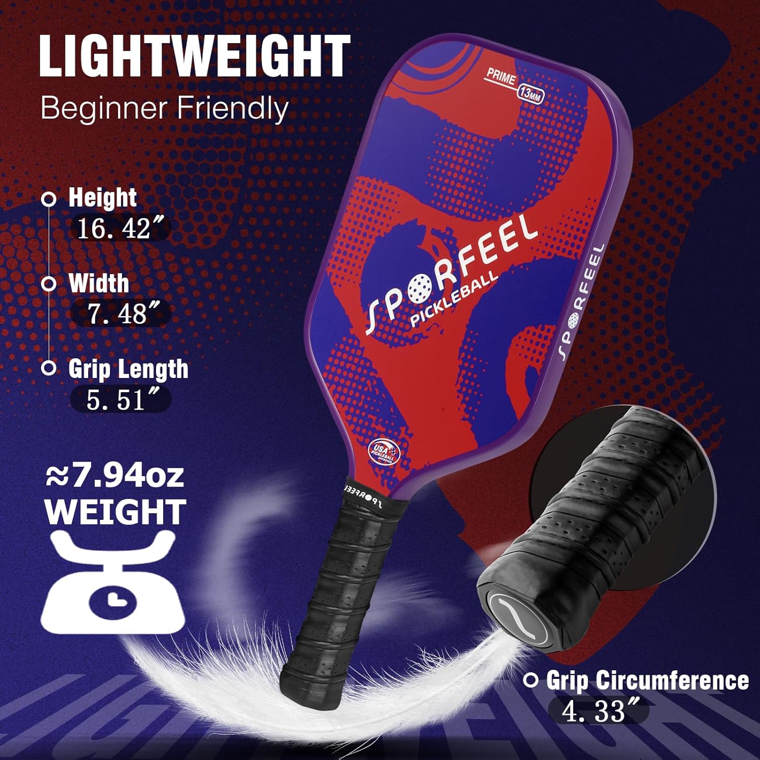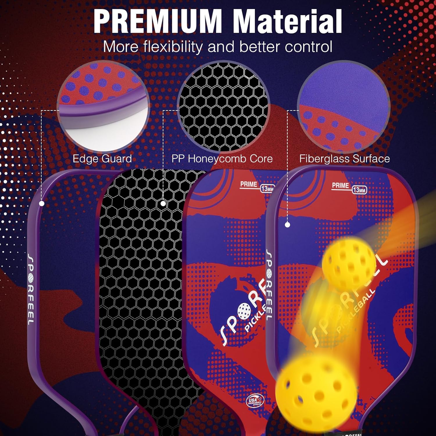 SPORFEEL Pickleball Paddles, USAPA Approved Fiberglass Pickleball Paddle Sets, Indoor Outdoor Pickle Ball Sports Accessori...