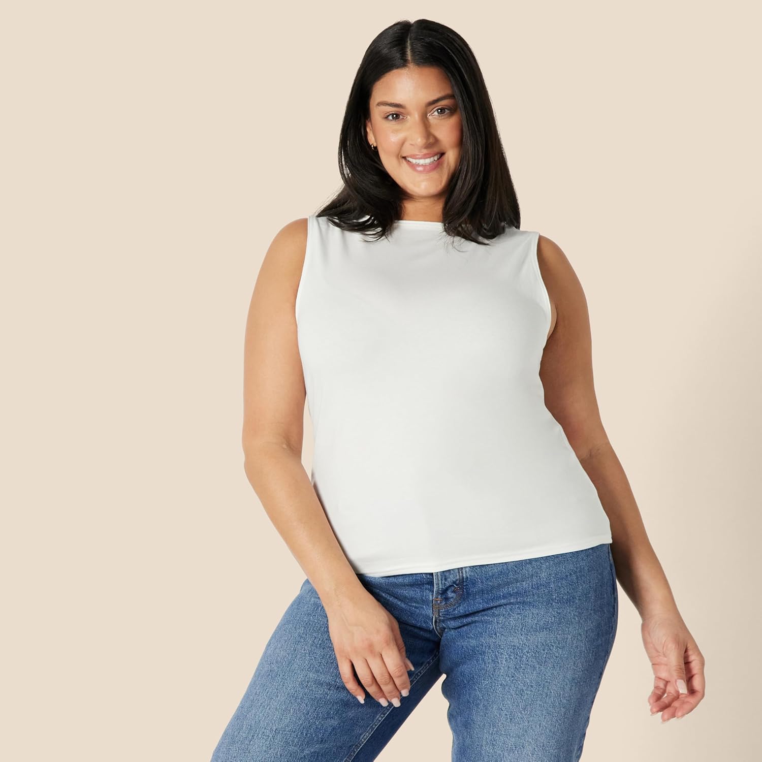 DETAILS: Features a classic boat neck, sleeveless arm openings, and slim fit for effortless style