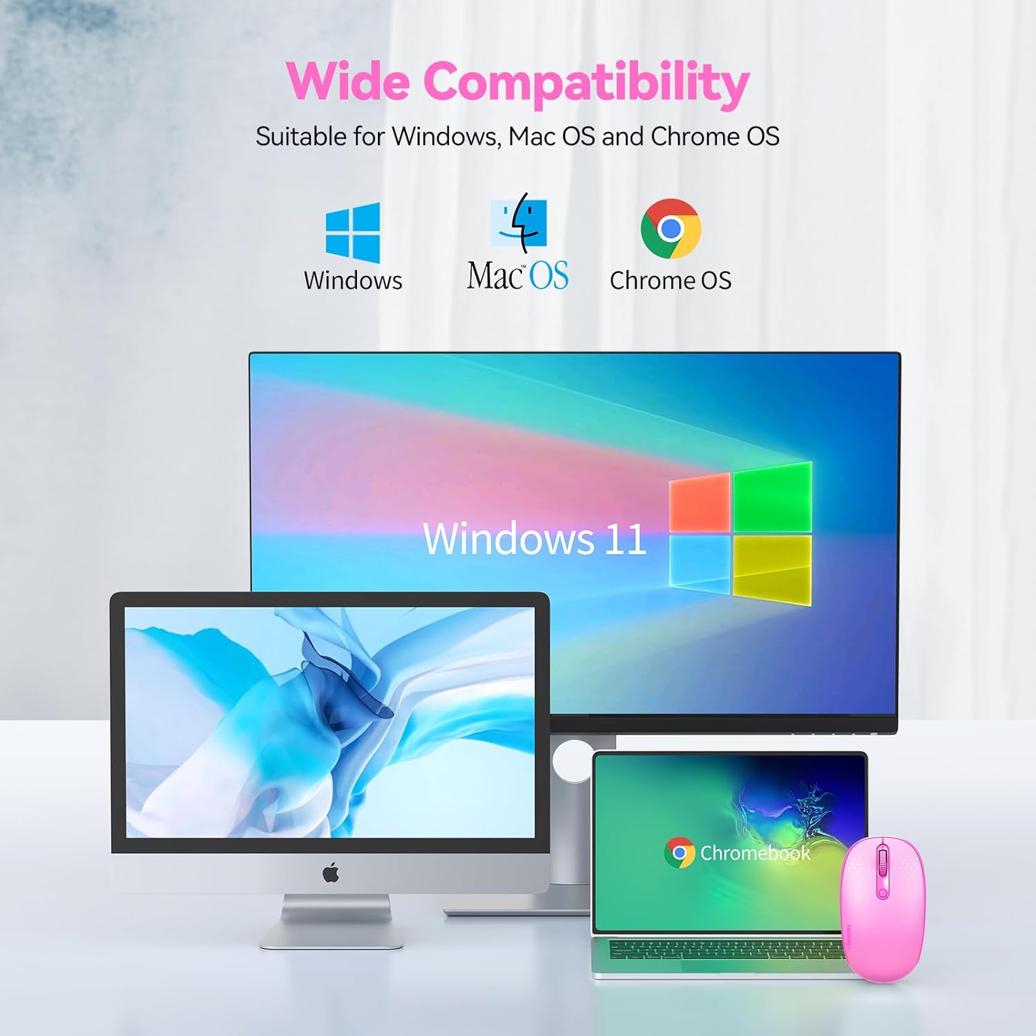 【Soft Click Quiet Mouse】 Responsive buttons and scroll wheel provide very soft click with less noise, no more disturbing others and bring you comfortable using experience.