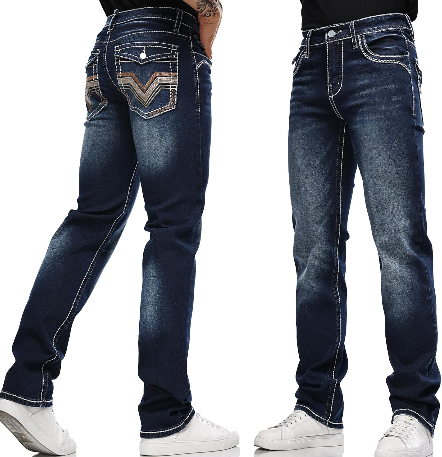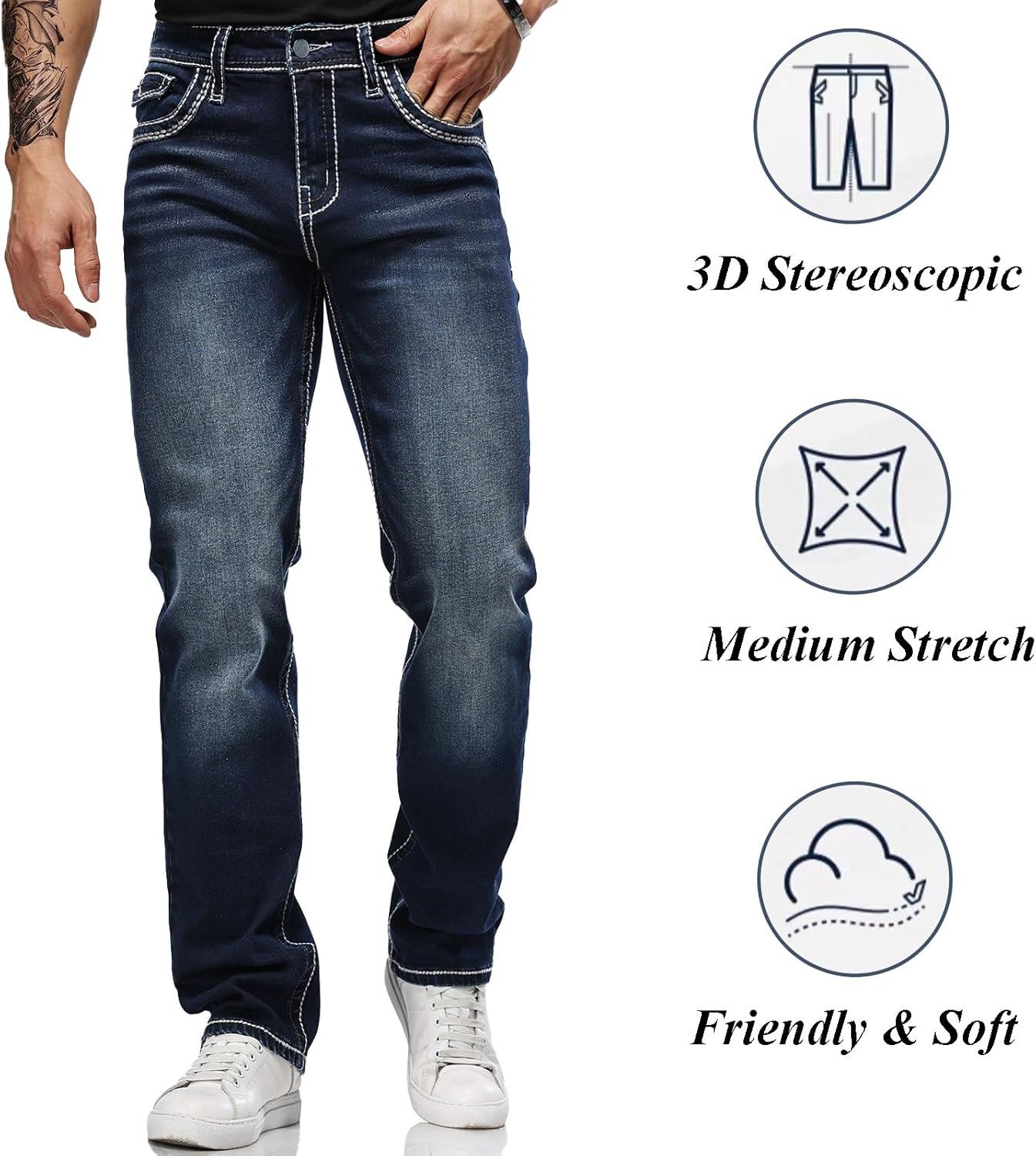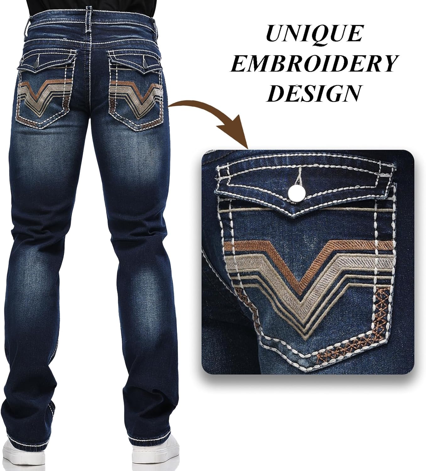 Men's Stretch Denim Jeans Classic Jeans with Embroidered Design, ESDVD Street Style Regular Jeans Relaxed Fit Pants Comfy