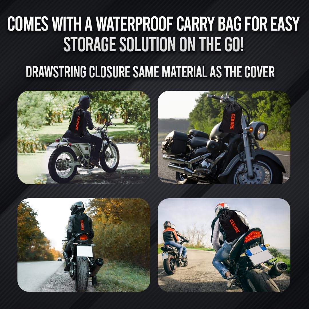 Cekure Your Ride! Heavy Duty Motorcycle Cover Waterproof Outdoor 210 Oxford Fabric with Heat Sealed Seams Ultra Waterproof...